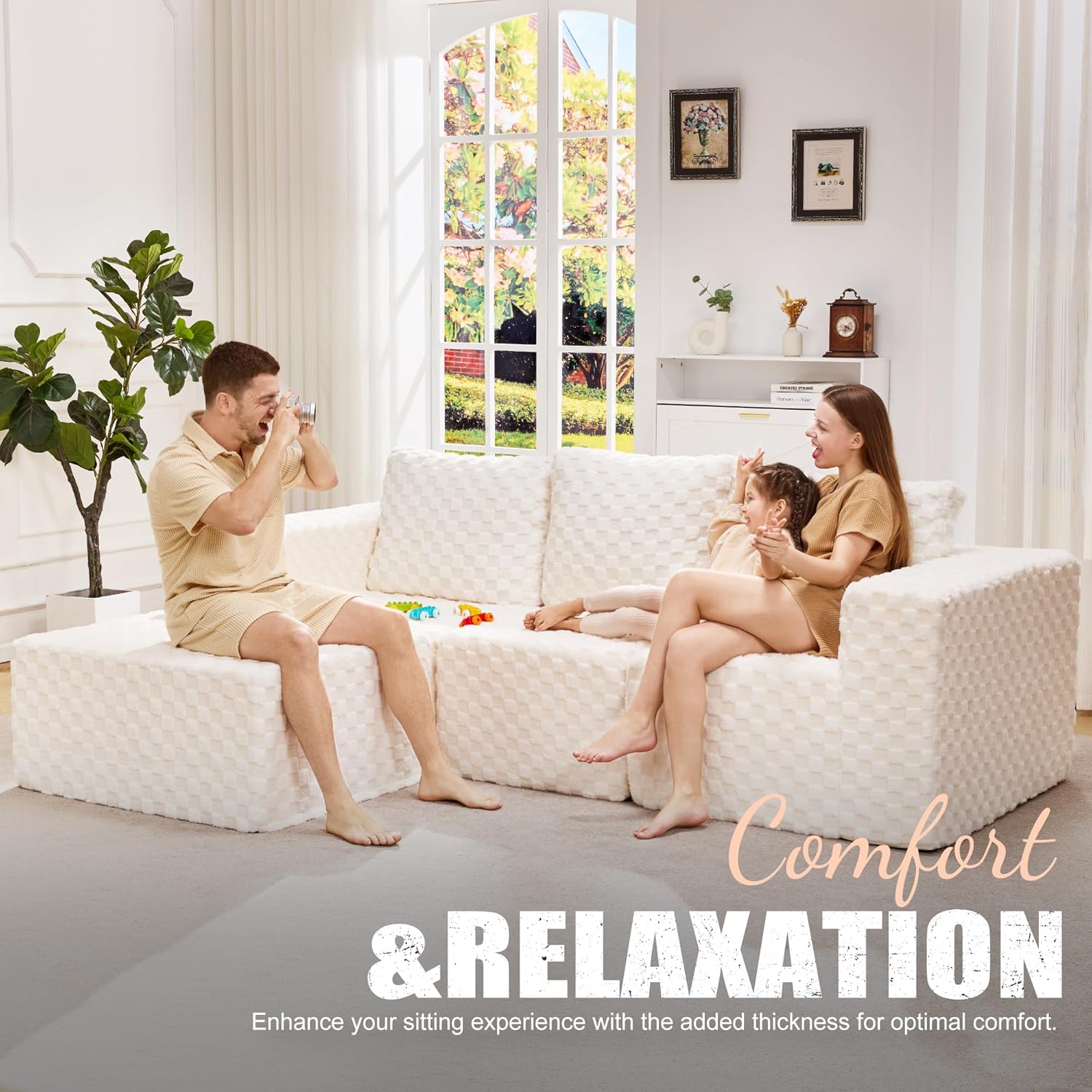 - Suitable for Various Occasions and Spaces: The sectional couch is designed for versatility. Its soft fabric and comfortable filling make it ideal for use in the living room, office, or any other space where you want to relax. Whether you're hosting a gathering or simply enjoying some downtime, this oversized sectional sofa will enhance your comfort and style.