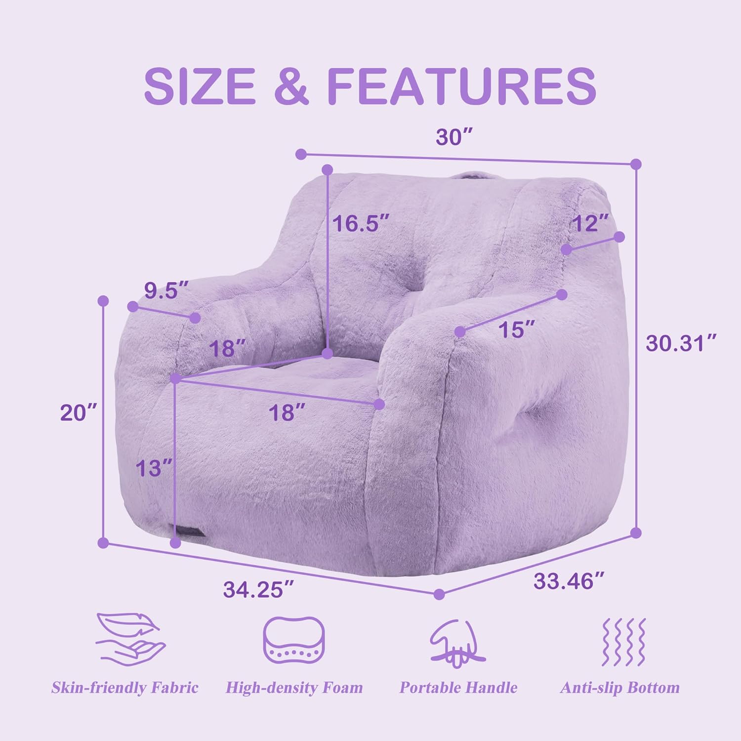 Hobestluk Bean Bag Chair for Adult Small Bean Bag Chairs with Arms Furry Beanbag Chair with Foam Filler Stuffed Bean Bag Sofa for Reading in Bedroom Living Room and Dorms (Purple)