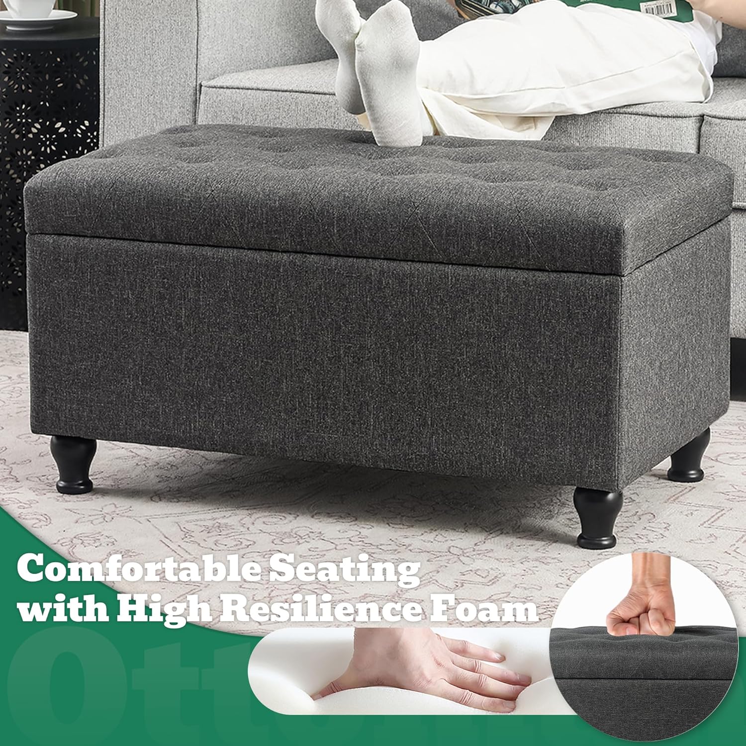 Ottoman with Storage 32'' Ottoman Storage Bench Linen Fabric Ottomans Footstools Upholstered Foot Rest Stool for Couch, Living Room, Bedroom, Entrance Shoe Bench Dark Gray
