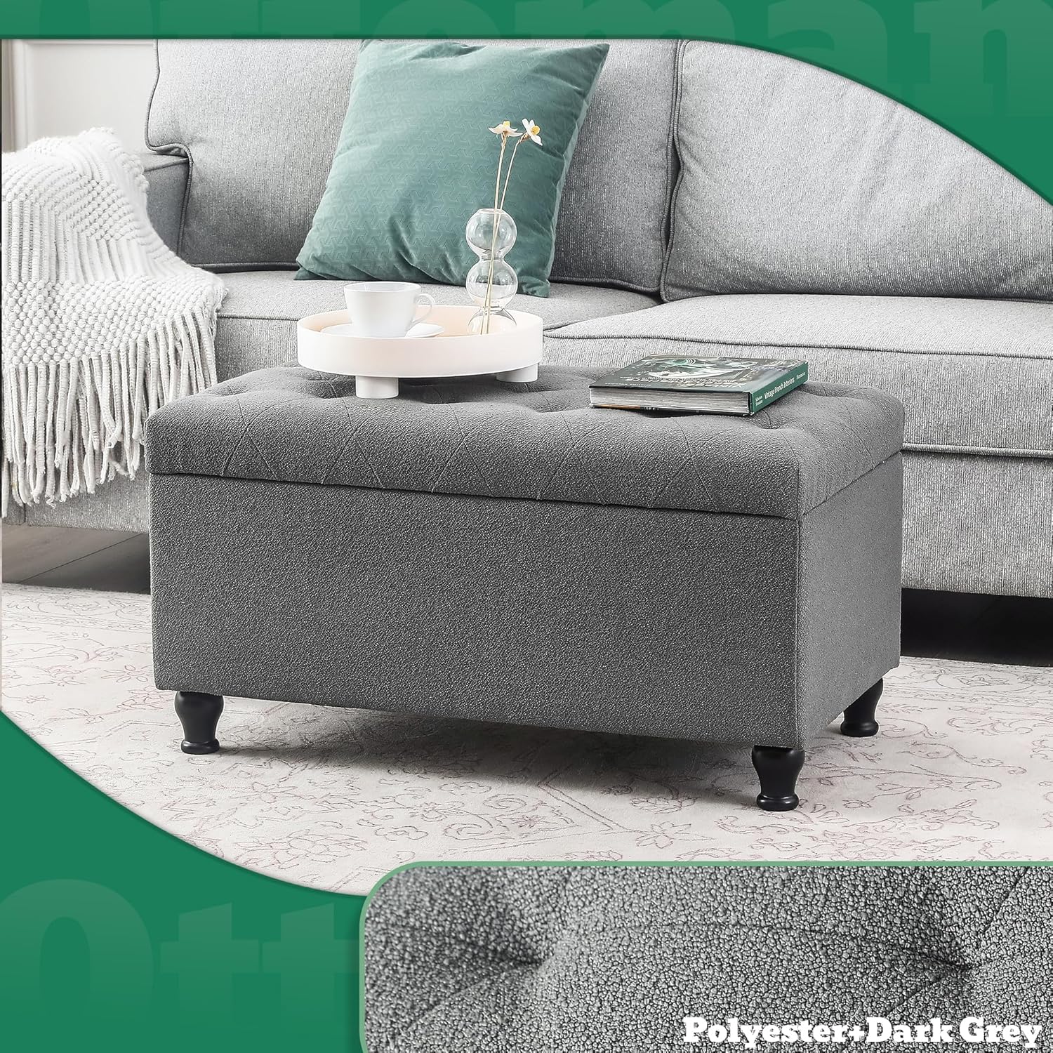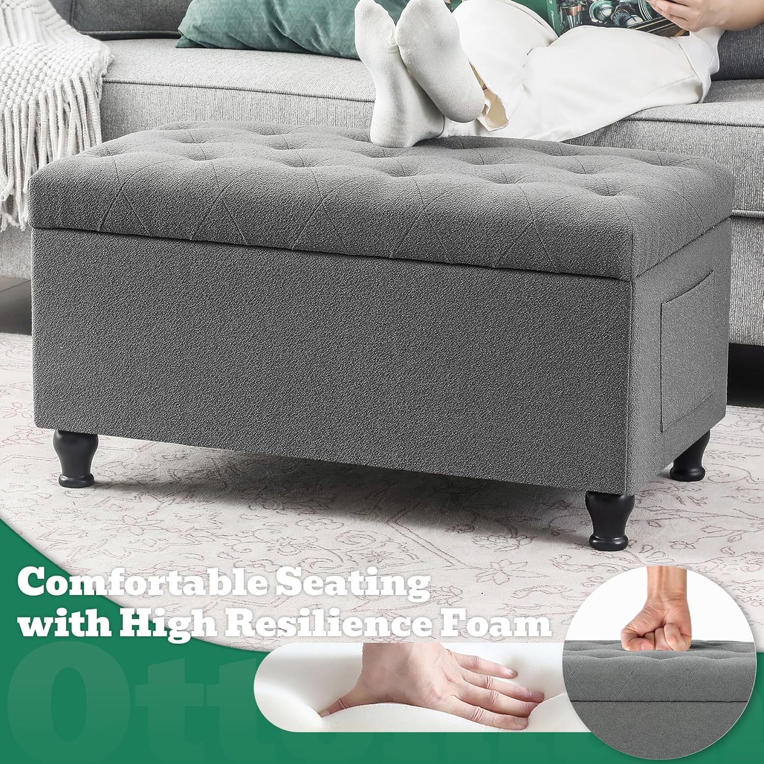 - ăVersatile Design for Multiple Usesă- Whether you need extra seating, a comfortable footrest, or a practical storage solution, this ottoman with storage does it all. Its versatile design makes it ideal for use in bedrooms, living rooms, entryways, or any area where you need both seating and storage.