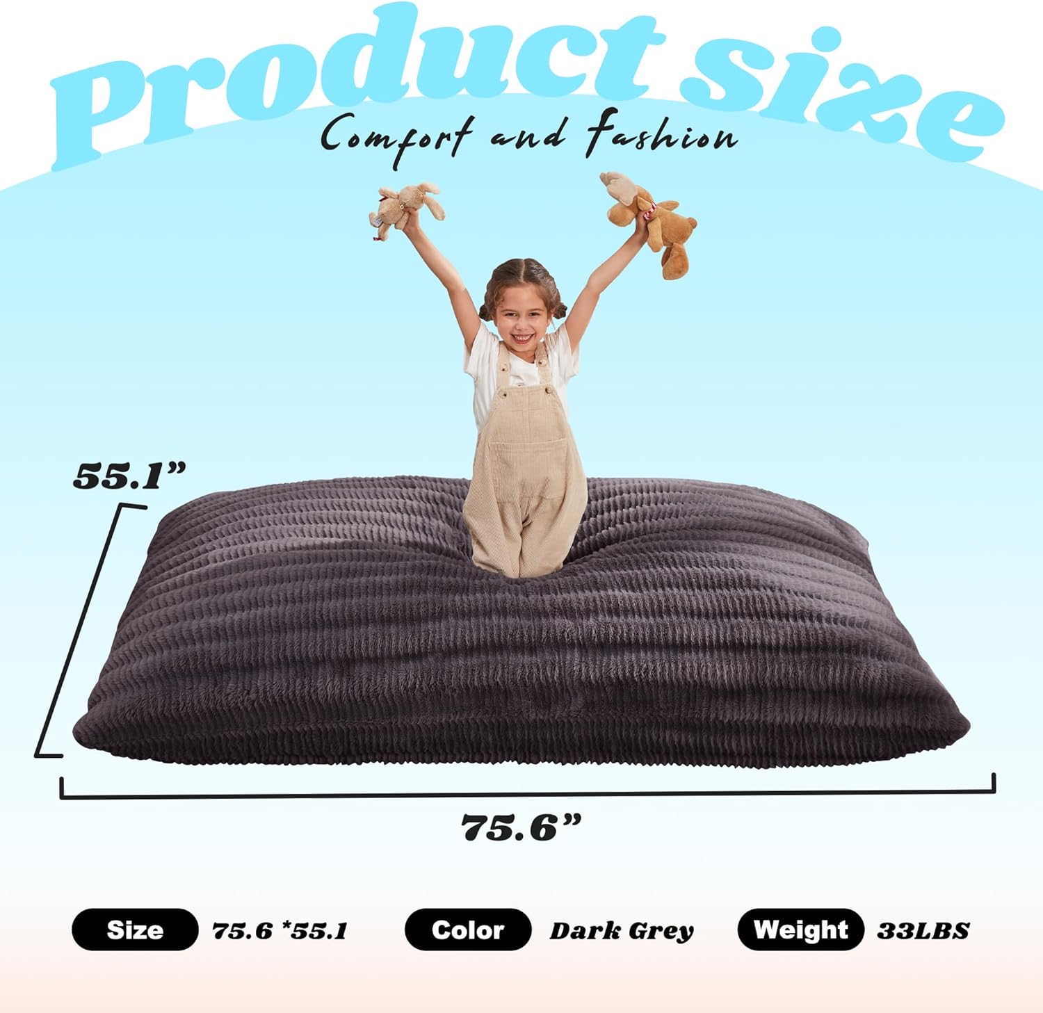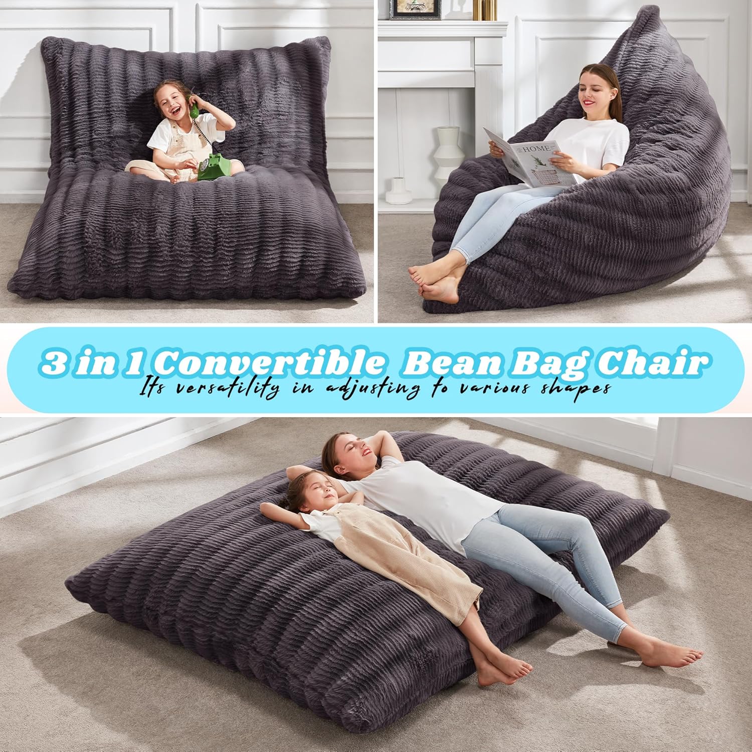 Hobestluk 3 in 1 Bean Bag Chair Giant Bean Bag Chairs for Adults with Ripple Cover Convertible Bean Bag Floor Cushion with Machine Washable Cover for Living Room (Ripple Dark Grey)