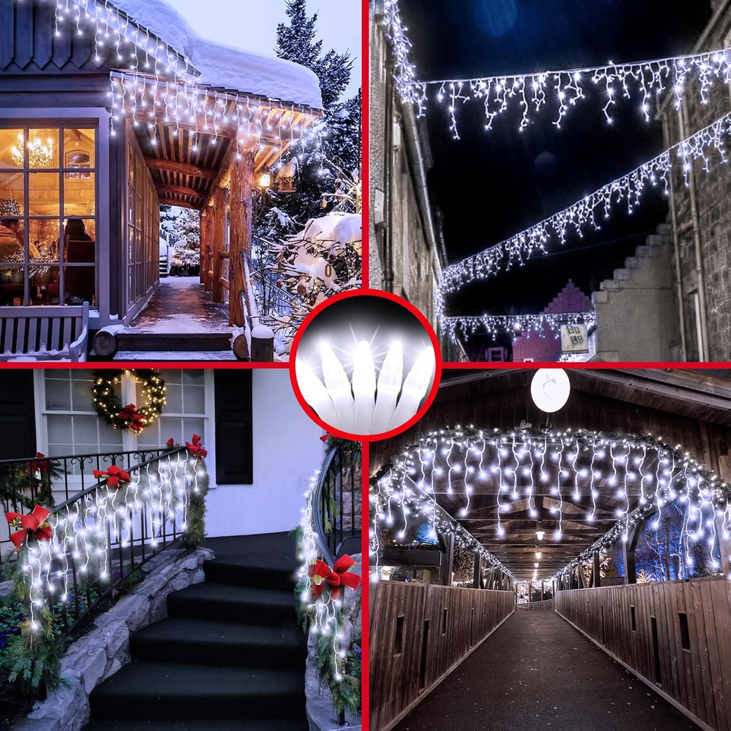 - Bring Christmas Magic to Every Corner:Transform your home into a winter wonderland with our 164ft cool white LED Christmas lights featuring 1620 LEDs and 360 drops. Their pure and frosty glow makes them perfect for hanging along porches, balconies, rooftops, windows, and even fences. Whether you’re decorating your apartment for a cozy holiday atmosphere or lighting up your backyard patio for festive gatherings, these outdoor waterproof icicle lights instantly create an elegant snowy vibe