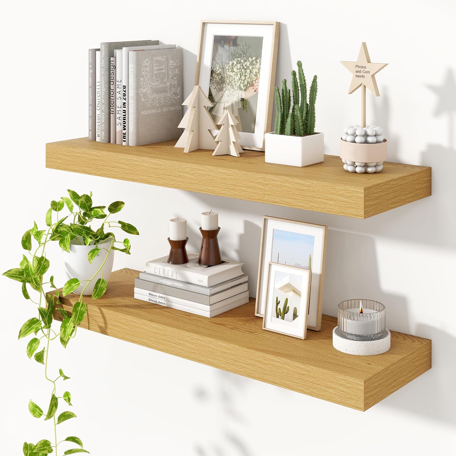 Heimlove 36 Inch Floating Shelves for Wall Set of 2,Oak Wall Shelves for Storage & Decor - Heavy Duty with Invisible Brackets,Perfect for Living Room,Bedroom,Home Office