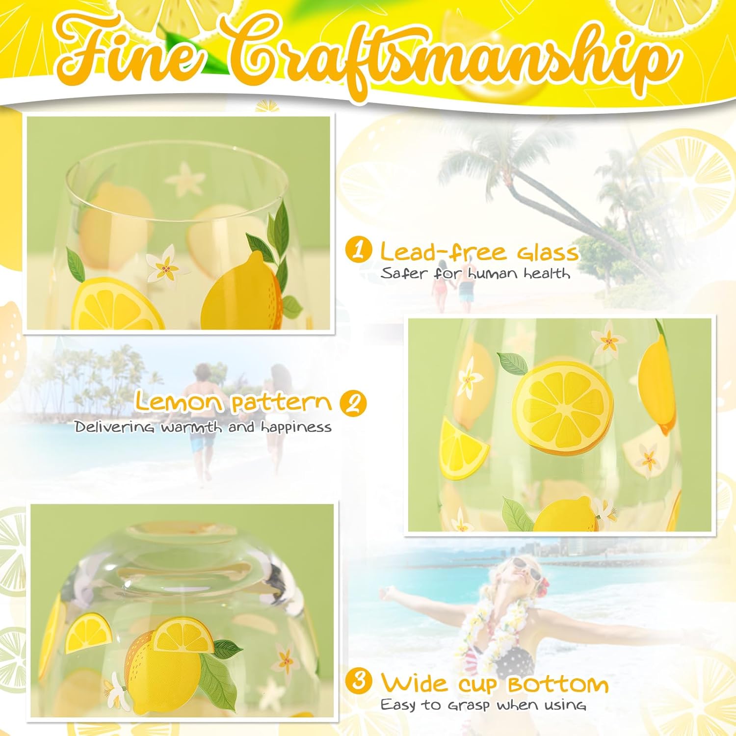 - Practical Design: this lemon glass cup features a narrow opening and wide bottom design, showcasing smooth lines and an elegant shape that reduces the risk of spillage; Its ergonomic design ensures a comfortable grip, enhance your overall wine tasting experience with your loved ones