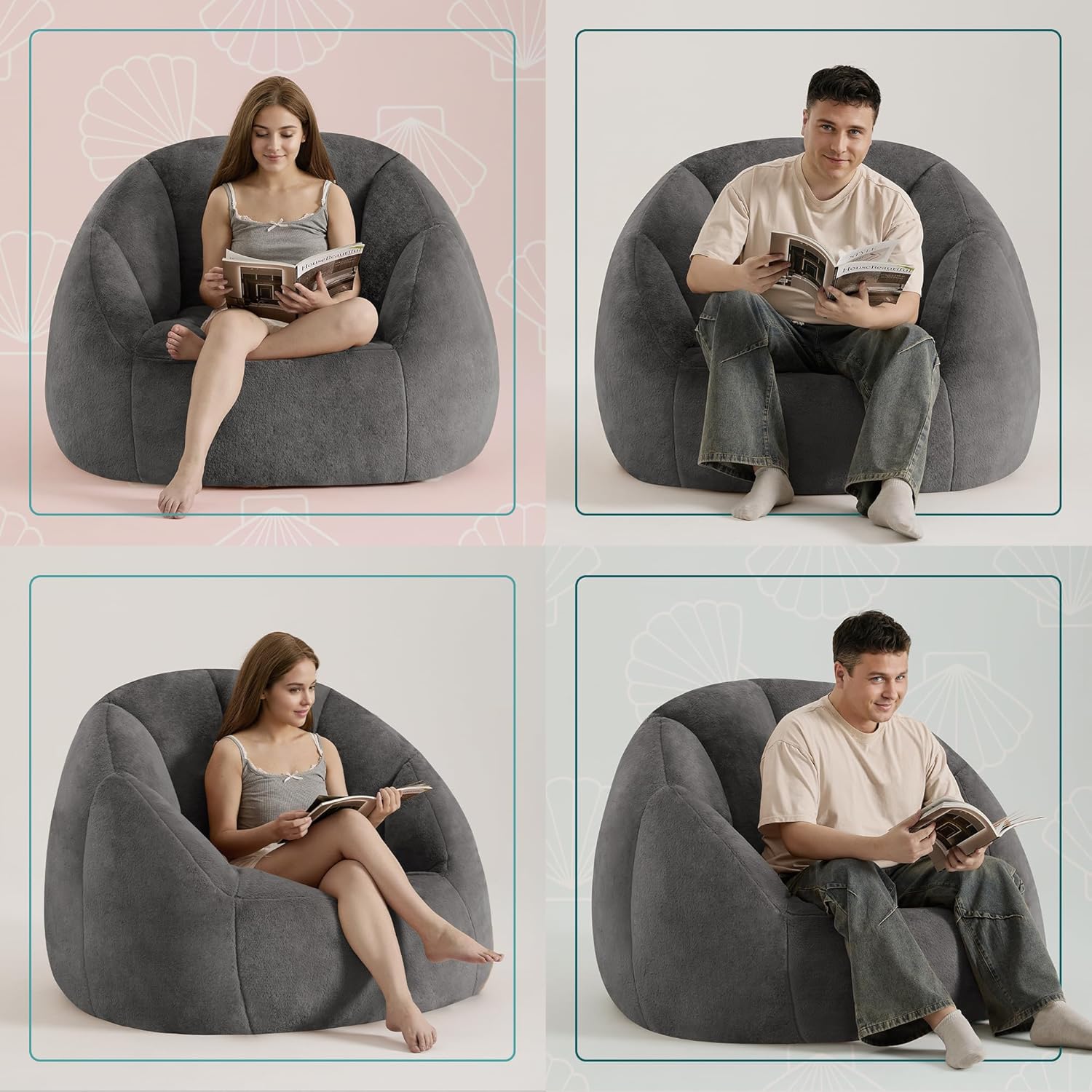 Giant Bean Bag Chair for Adults - Comfy Plush Round Shell Soft Accent Chair, Oversized Cozy Lounge Floor Sofa Reading Chair, Mini Couch for Living Room, Bedroom & Game Rooms, Gray