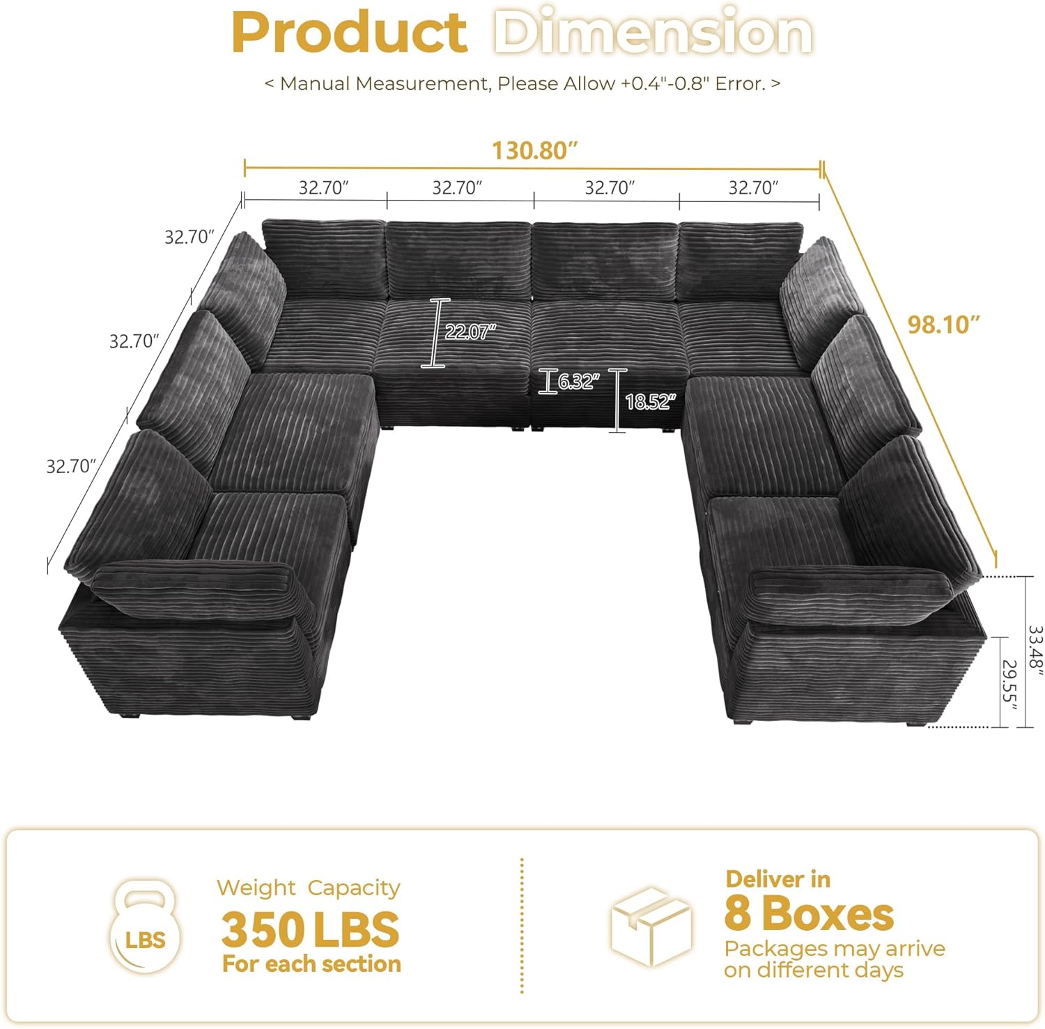- Modular Sectional: 100% Free combination with 8 pieces individual sections. Make it straight I shape, U shape, L shape, bed shape, etc. Versatilely fits for daily use, family happy hours, party hosting