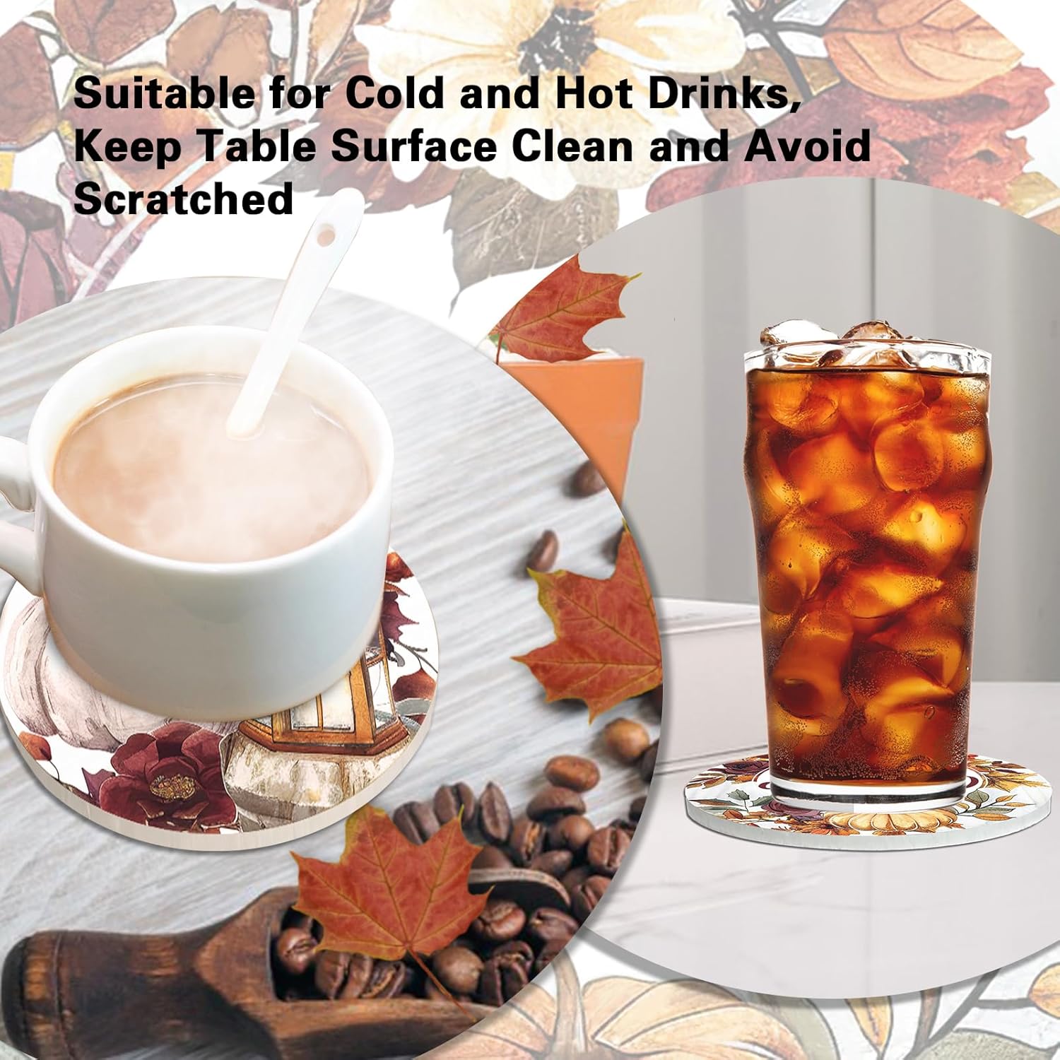 - Exquisite Design: This retro coasters set showcases 6 different unique and stylish designs, which are carefully designed by our designers. Drink coasters printed with lantern, leaves patterns, bright colors, vivid and beautiful. It is not solely a coaster set, but also a decorative element. Featuring a chic design, these desk coasters will look adorable on your table, and liven up your table decor