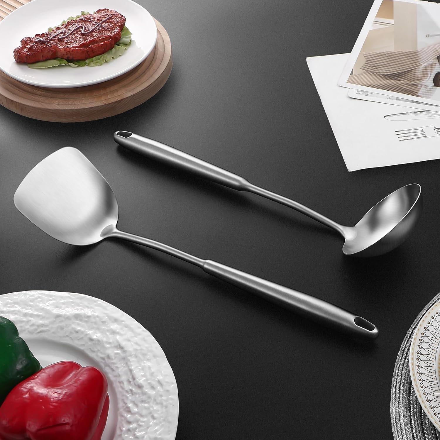 14-15" Wok Spatula and Ladle,2 PCS Wok Tools Set,304 Stainlss Steel Cooking Utensils,Matte Wok Accessories,Solid Wok Utensils