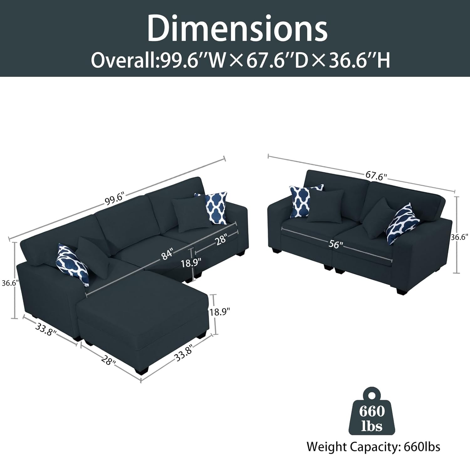 - ăErgonomic DesignăThe backrest of the couches for living room perfectly fits the human body curve, the armrests are wide and at the right height, and the living room sofa as a whole is ergonomically designed to give you comfortable support. The modular sectional sofa is paired with multiple multi-functional small pillows, allowing you to relax anytime, anywhere. The oversized couch has a weight capacity of up to 660 pounds to give you stable support.