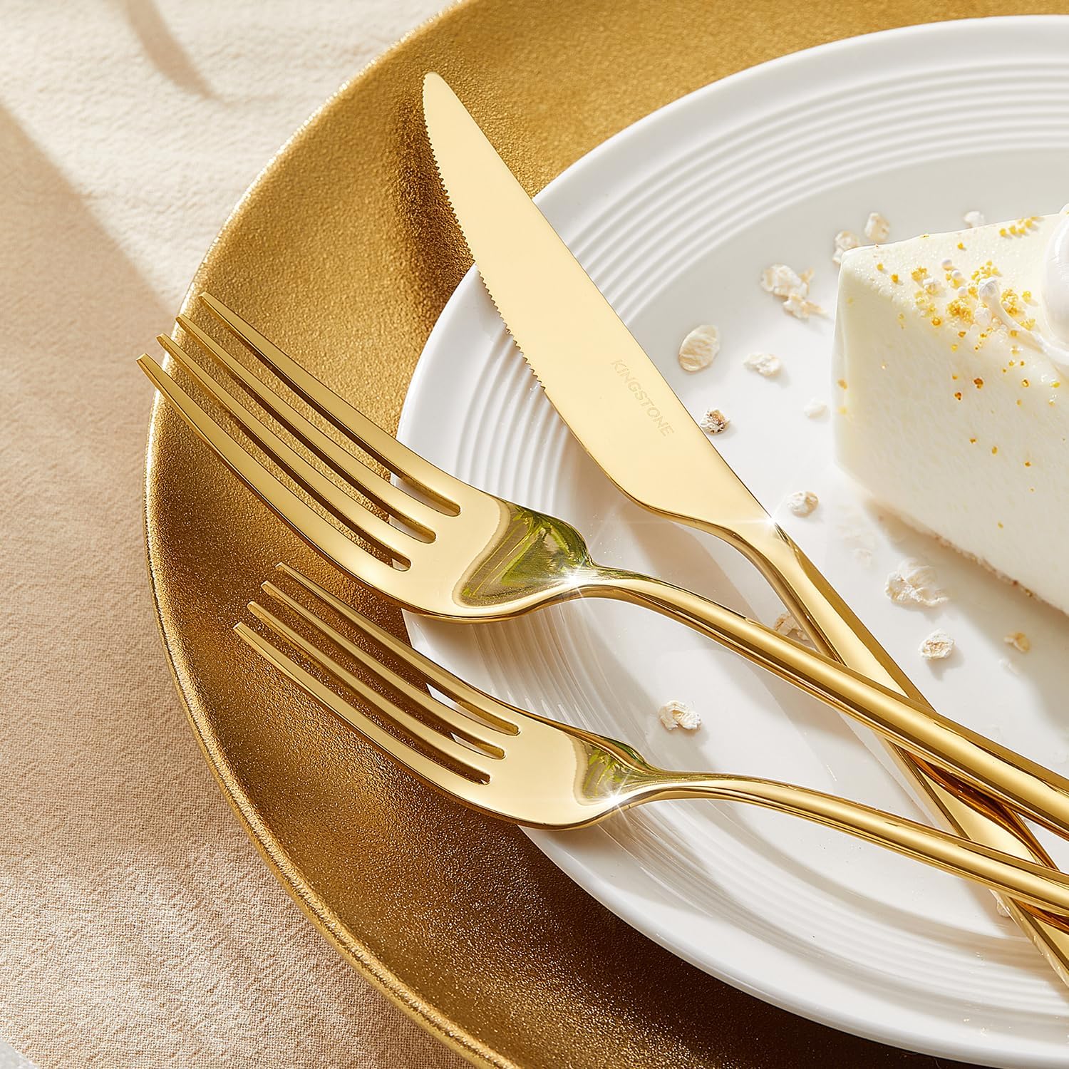 KINGSTONE Silverware Set, 40-Piece Flatware Set Cutlery Set Premium 18/10 Stainless Steel, Tableware Include Forks Knives Spoons for Home Kitchen Restaurant Wedding, Dishwasher Safe, Gold