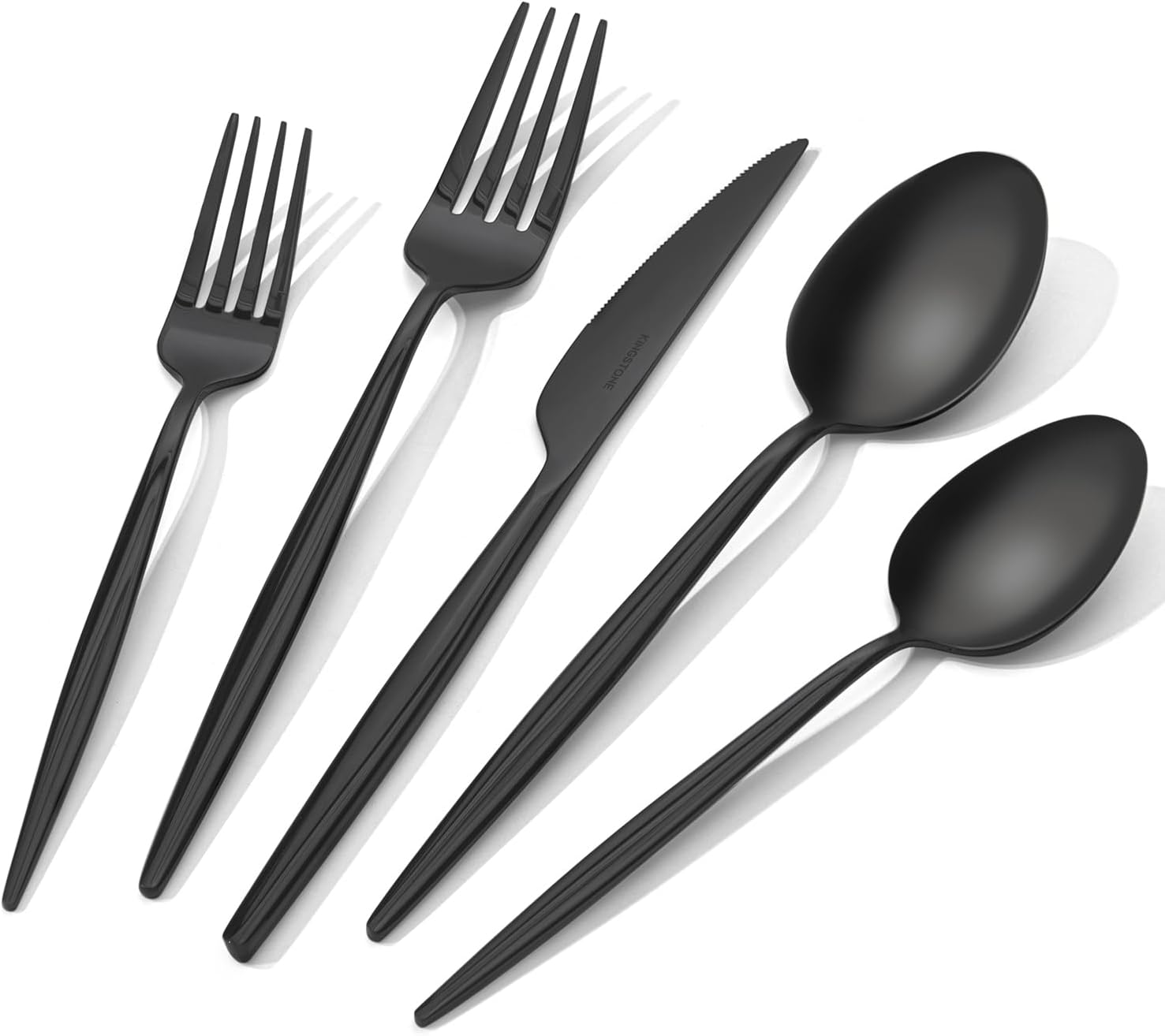 KINGSTONE Silverware Set, 20-Piece Flatware Set Cutlery Set Premium 18/10 Stainless Steel, Tableware Include Forks Knives Spoons for Home Kitchen Restaurant Wedding, Dishwasher Safe,Black