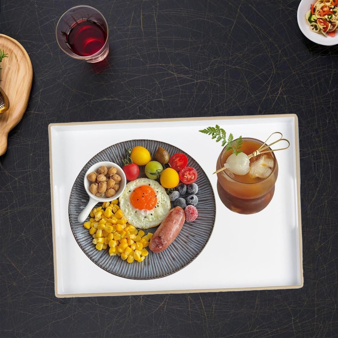 - Versatile Usage: This plastic decorative tray is suitable for various settings such as the living room, kitchen, and bedroom. It can be placed on tea tables, sofas, ottoman, or beds, making it a decorative and creative display tray for numerous occasions.