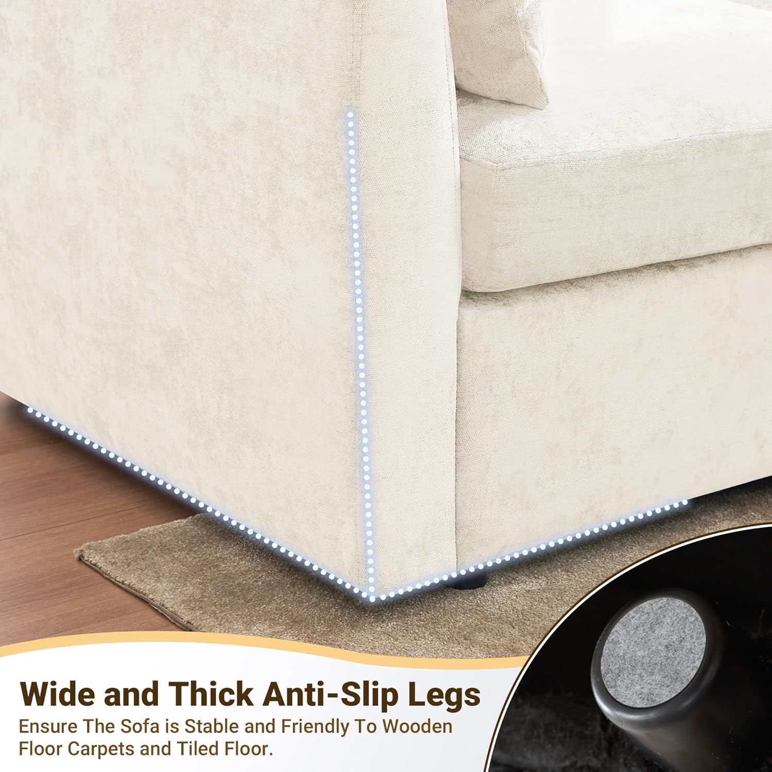 - Chenille Fabric - Wrapped in chenille fabric, this sectional couch combines velvety softness with everyday durability. The dense, textured weave resists pilling while maintaining its plush feel, and its naturally breathable properties keep you comfortable in any season.