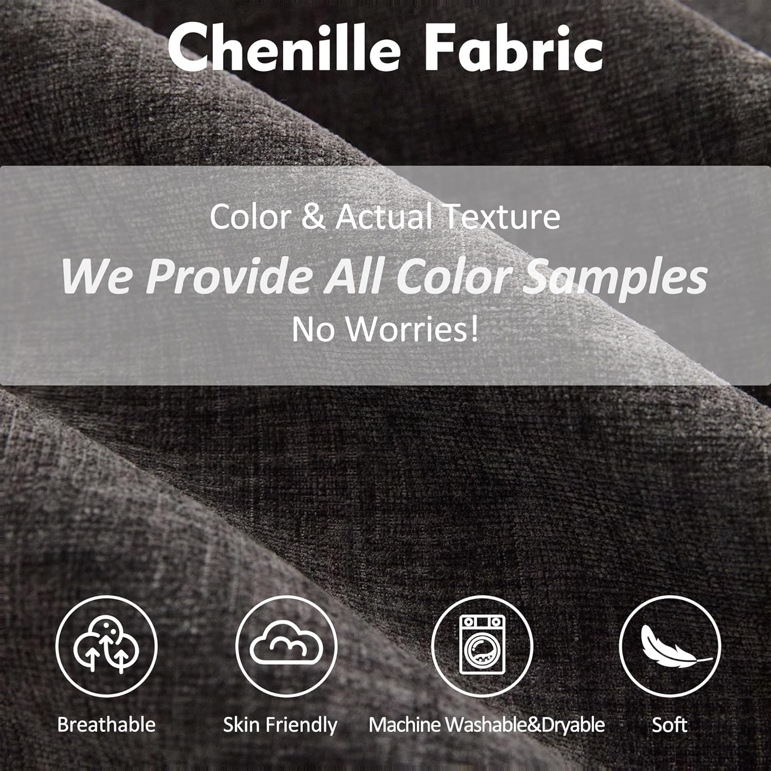 - Unique Chenille Fabric: The cloud couch is made of fluffy chenille fabric and has a unique appearance and feel. The overall appearance of the sectional sofa is very elegant and exquisite, with surface textures that make it resistant to dirt, wear, easy to care and it can be Machine washed and dried. And we can PROVIED ALL COLOR FABRIC SAMPLES for you to review and choose from