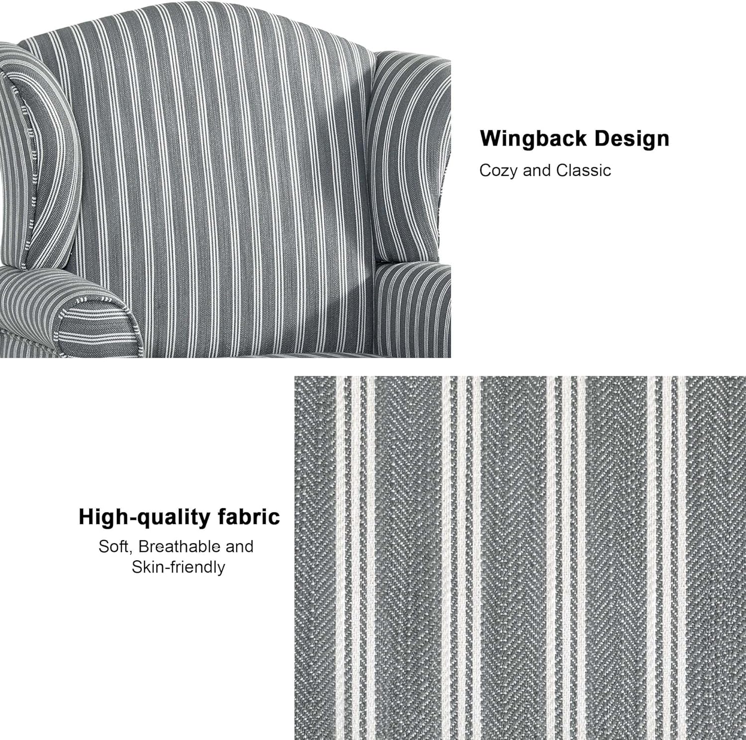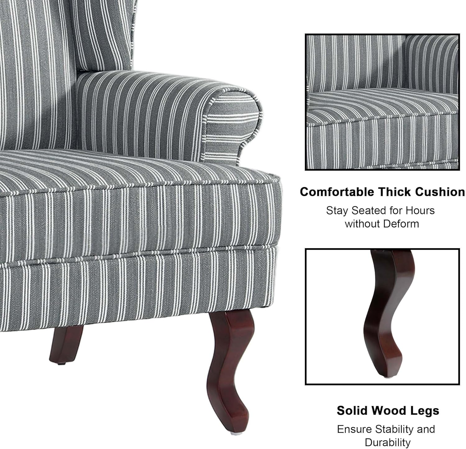 Accent Chair, High Back Upholstered Armchair with High Resilience Sponge & Wood Legs, Mid-Century Modern Comfy Single Sofa Reading Chairs for Living Room, Bedroom (Stripe Grey, Set of 2)