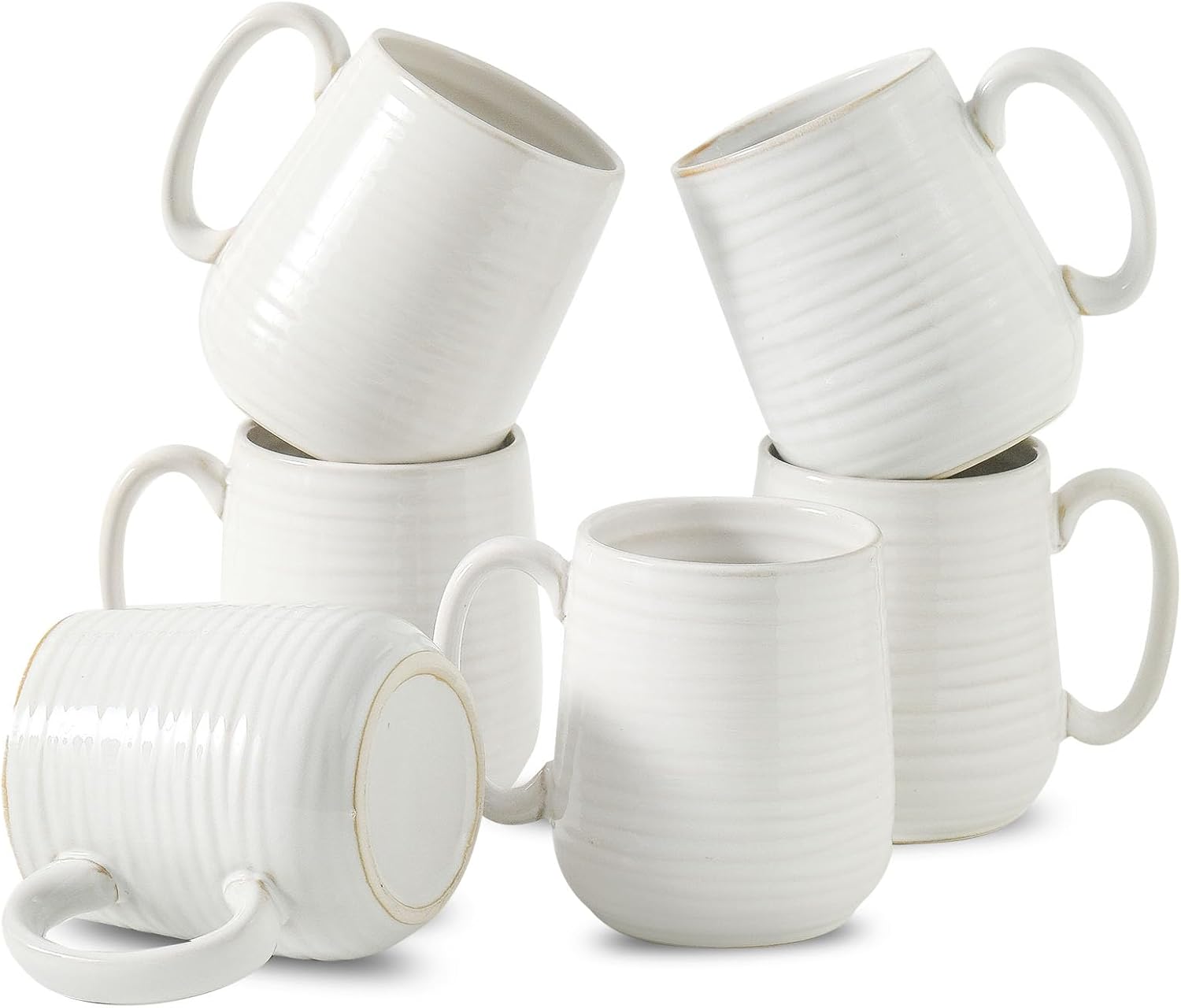 - ARTISAN WHITE GLAZE WITH NATURAL CHARM: Each mug in this 6-piece set showcases our signature white ceramic glaze that subtly reveals earthy clay undertones - a beautiful kiln-fired effect that brings organic warmth to your coffee ritual while remaining fully food-safe