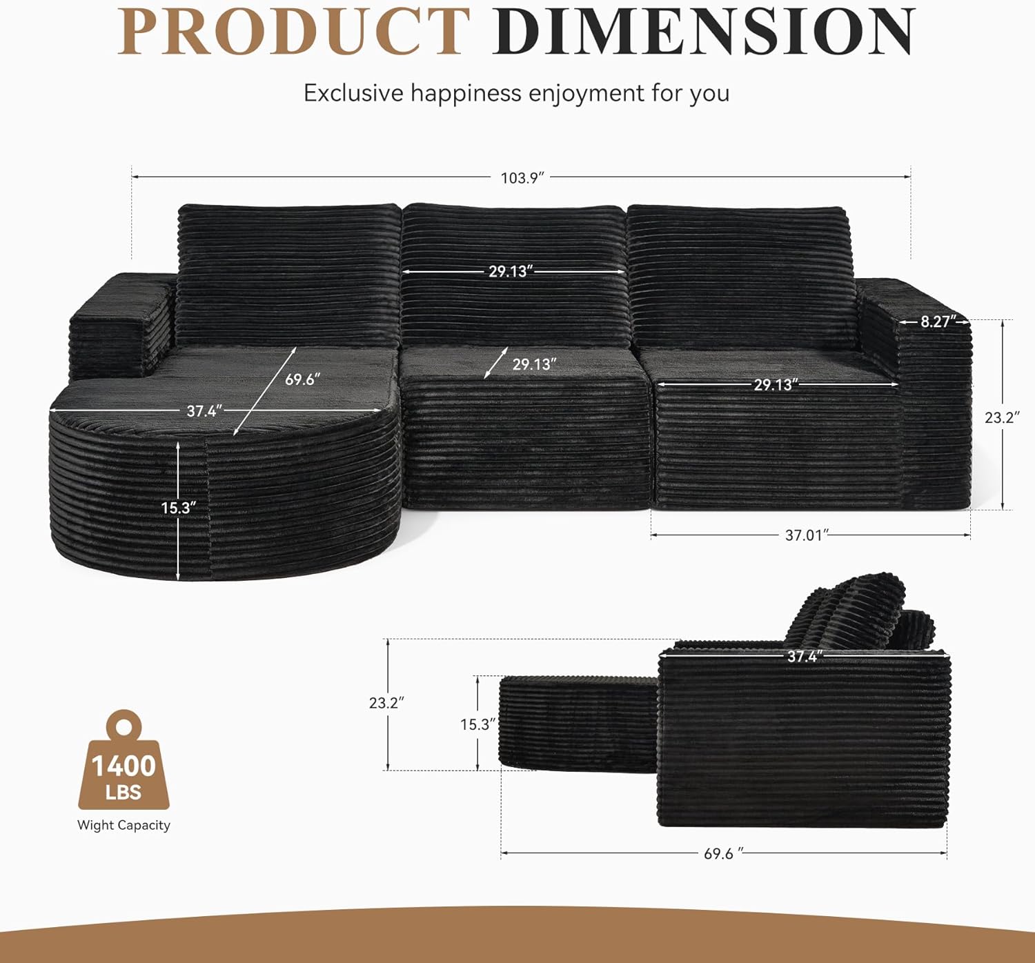 - L-SHAPE MODULAR SOFA: "Maximize Space with Style".This modular sectional sofa features a sleek L-shaped design that fits perfectly against walls, optimizing your living room sofa setup. Its unique curved sofa structure adds a touch of sophistication that sets your space apart.