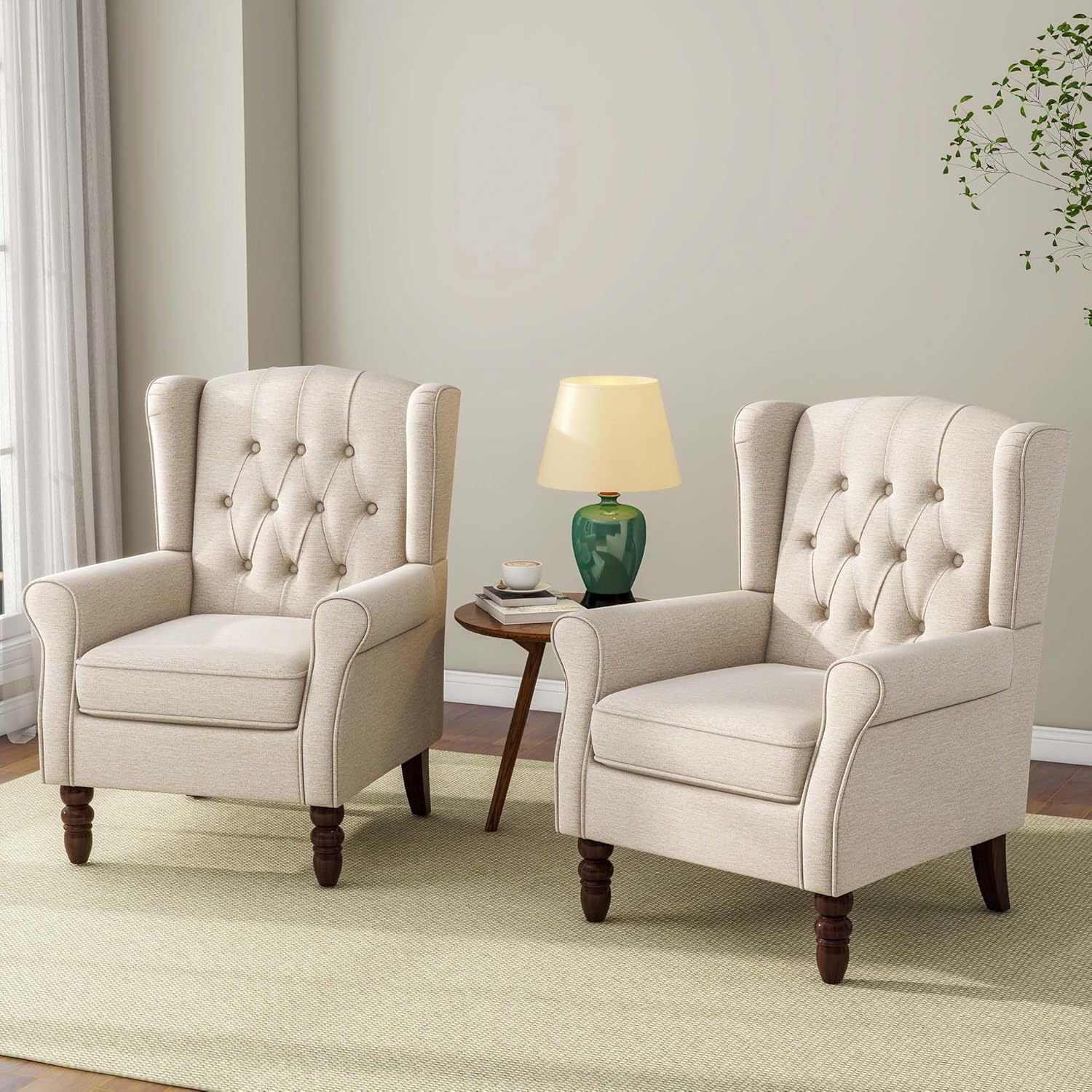 Accent Chair, Upholstered Armchair with Button Tufted High Back & Solid Wood Legs, Comfy Wingback Reading Single Sofa Chair for Small Spaces, Living Room, Bedroom