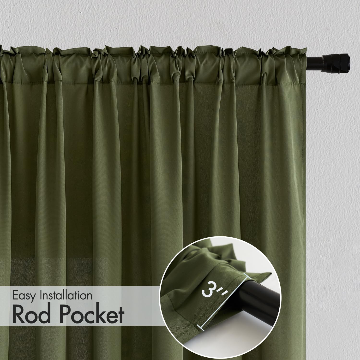 MIULEE Olive Green Privacy Sheer Curtains That Let Light in 72 Inches Long Non-See-Through Semi Sheer Curtain Light Filtering Window Curtains Drapes for Living Room Bedroom 2 Panels Set 42 X 72