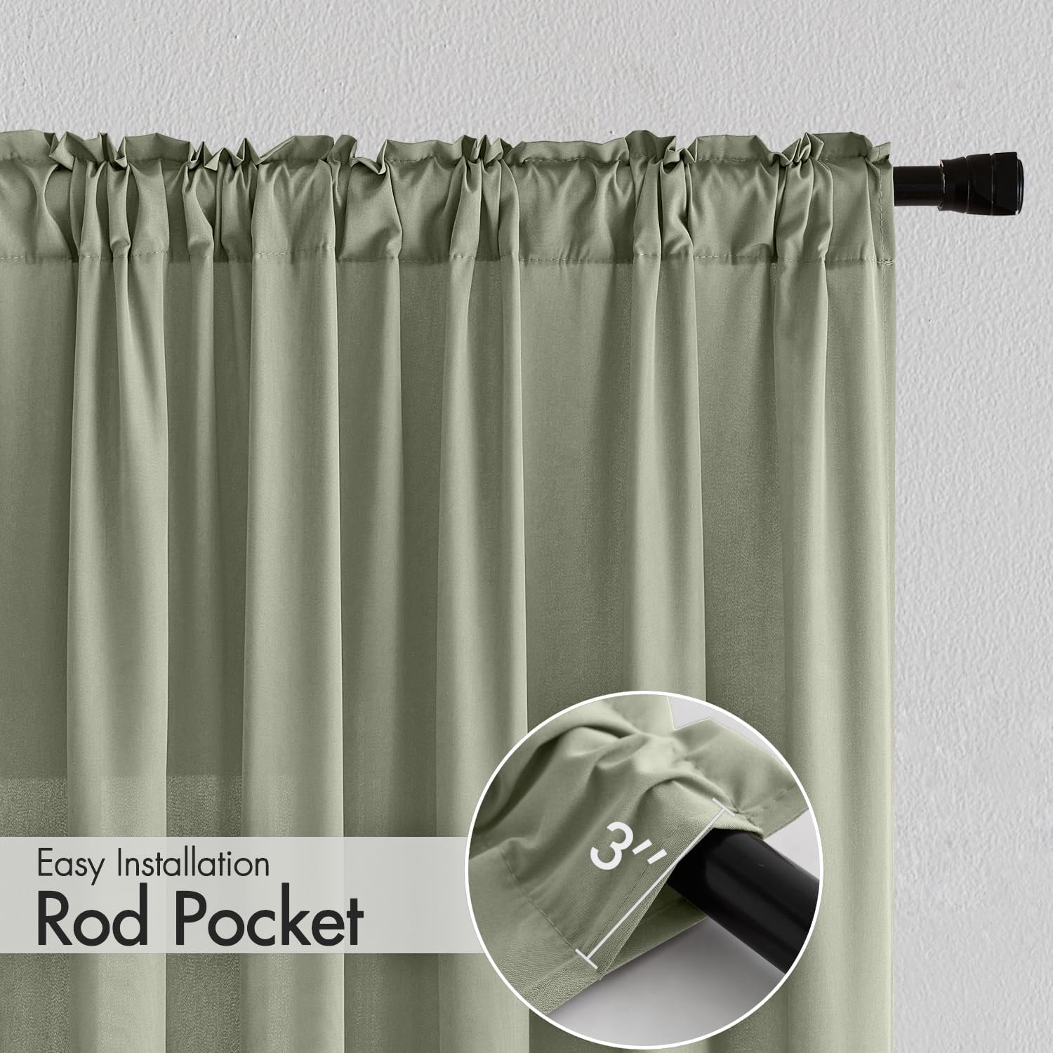 MIULEE Sage Green Privacy Sheer Curtains That Let Light in 63 Inches Long Non-See-Through Semi Sheer Curtain Light Filtering Window Curtains Drapes for Living Room Bedroom 2 Panels Set 42 X 63