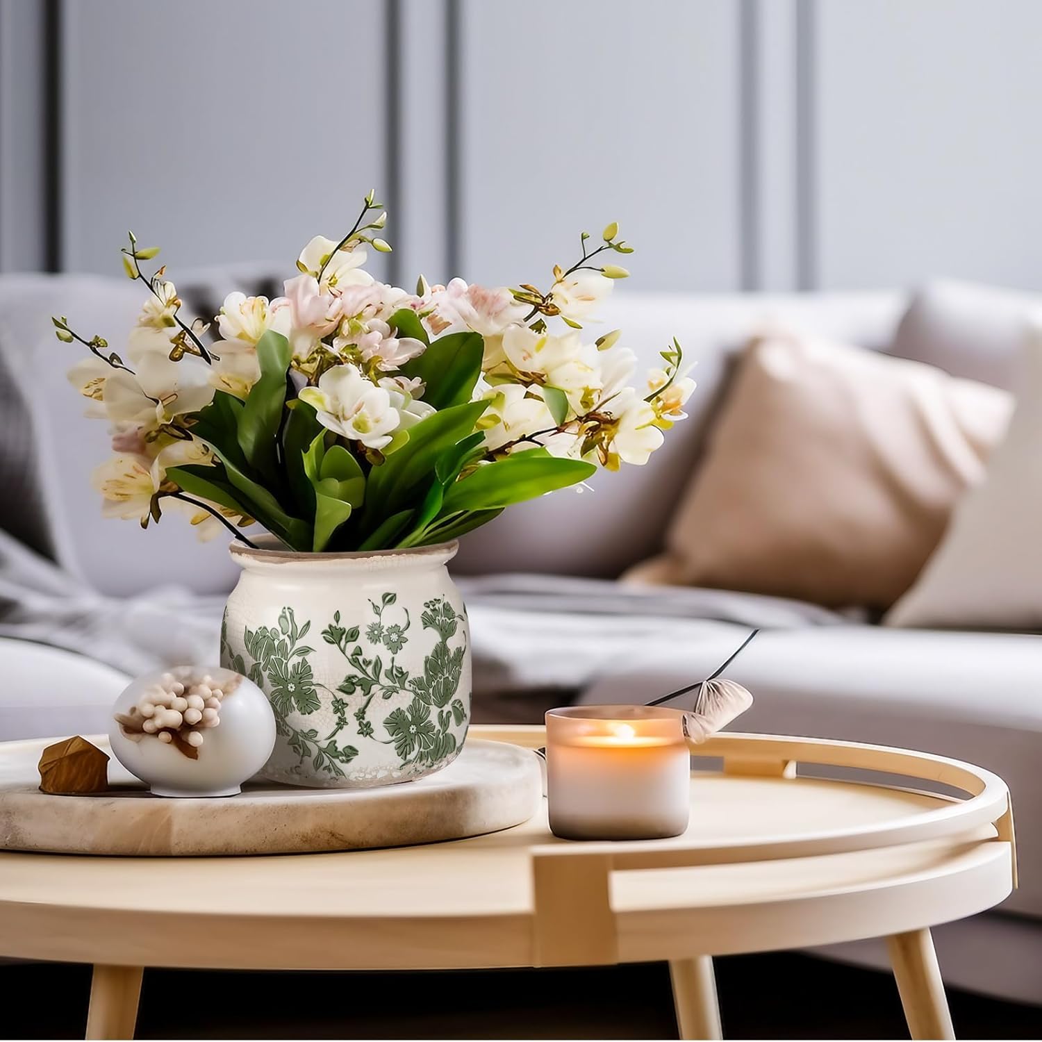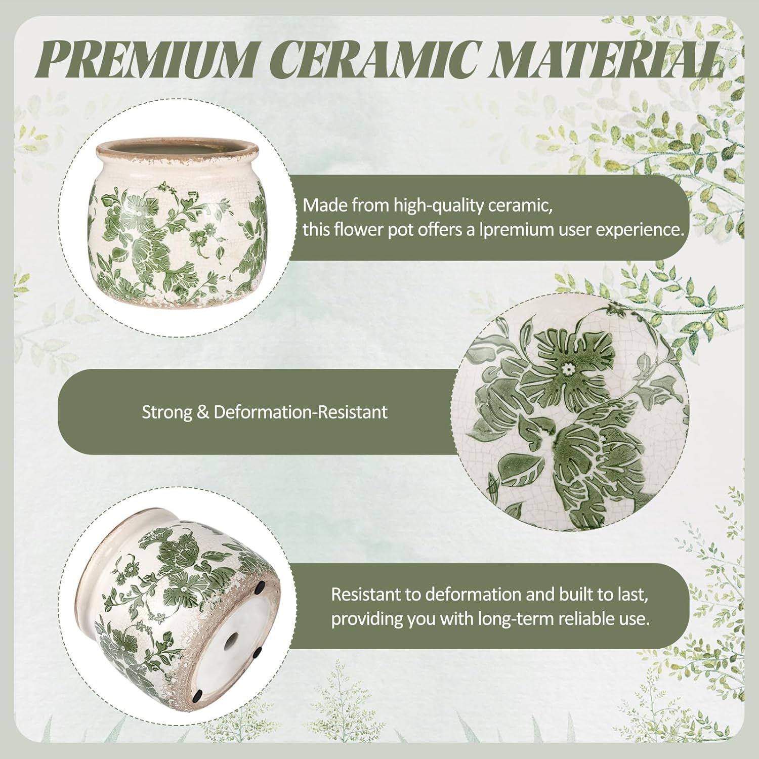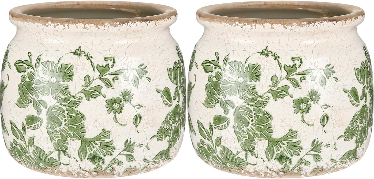 - Vintage Flower Pot: you will get 2 beige and green ceramic planter, which crafted with a distressed scroll pattern and crackle glaze finish, adding a rustic farmhouse vibe to both modern and traditional decor styles; Note: plants not included
