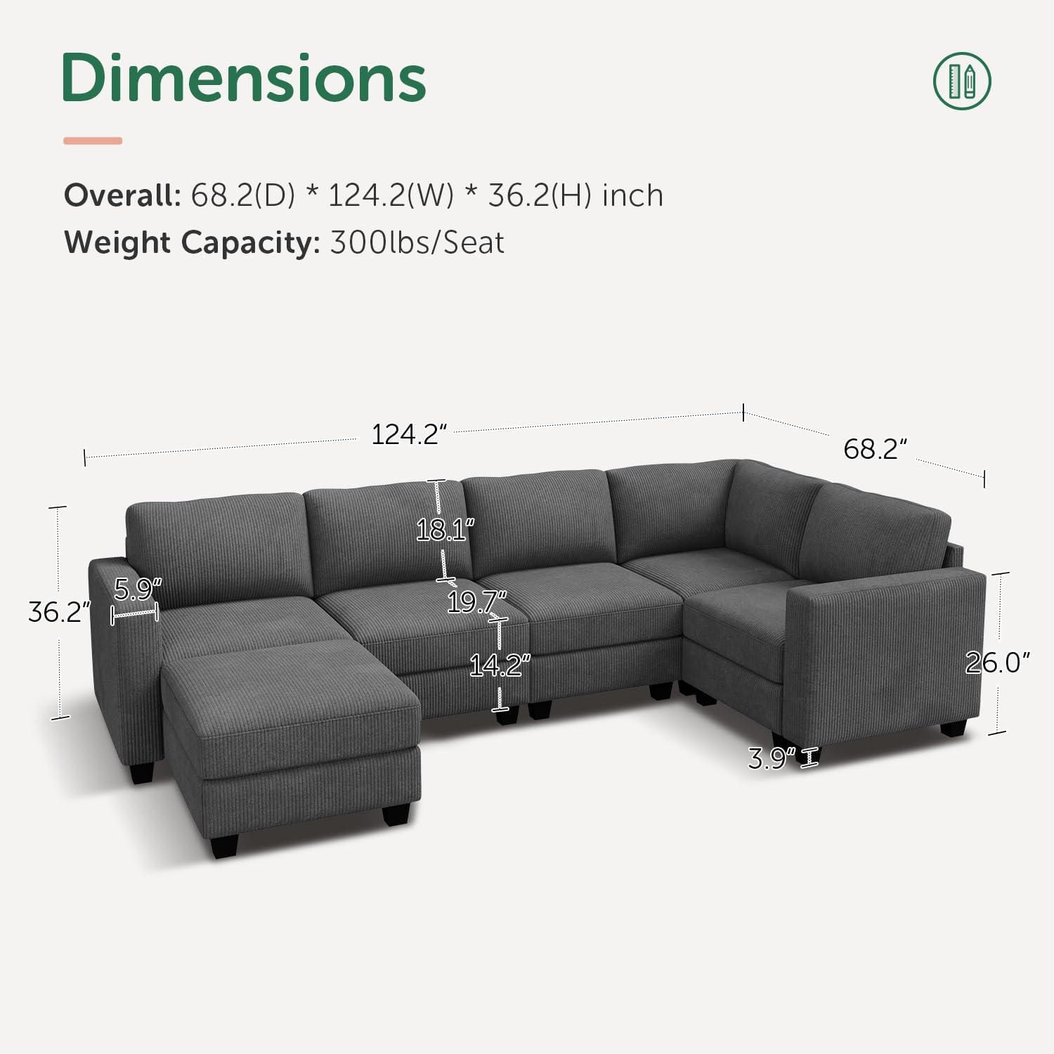 - Luxurious Corduroy Fabric: Indulge in the soft, thick texture of premium corduroy of the sectioanl couch—breathable, wash-resistant, and built to last. Its cozy yet durable finish resists wear, wrinkles, and daily chaos