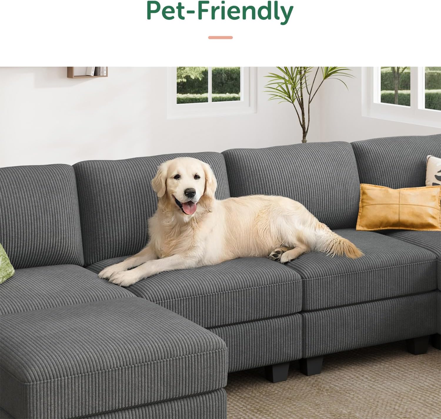 - Pet-Friendly Durability: The scratch-resistant, easy-clean corduroy fabric repels pet hair and withstands playful paws, ensuring the corduroy sectional sofa stays pristine