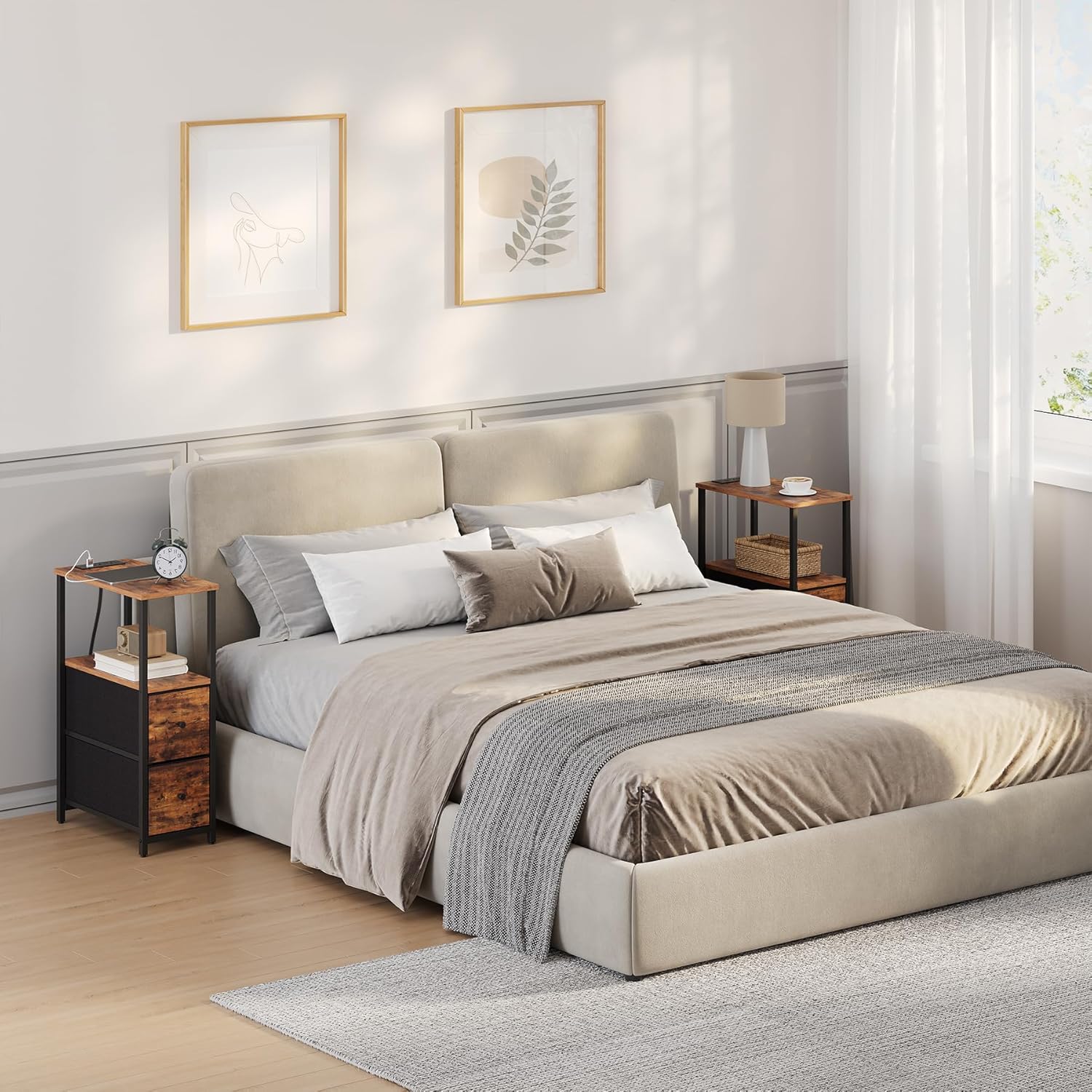 - [2 Fabrics Drawers] The bedroom nightstand has two open shelves for your magazines, boxes, and general living room knick-knacks, and 2 Fabric drawers for private stuff. The practical drawer easily goes in and out. It also arouses a guest’s curiosity.