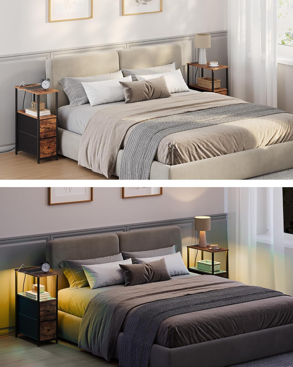 - [2 Fabrics Drawers] The bedroom nightstand has two open shelves for your magazines, boxes, and general living room knick-knacks, and 2 Fabric drawers for private stuff. The practical drawer easily goes in and out. It also arouses a guest’s curiosity.