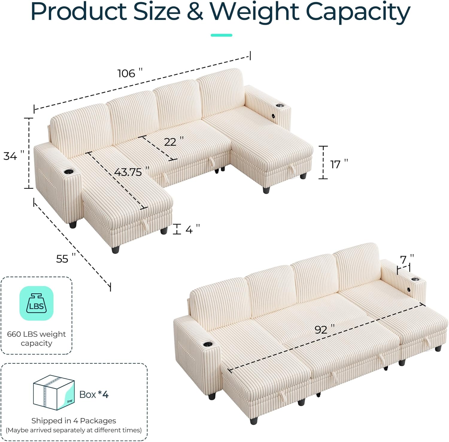 - Product Dimensions : 55"D x 106"W x 34"H