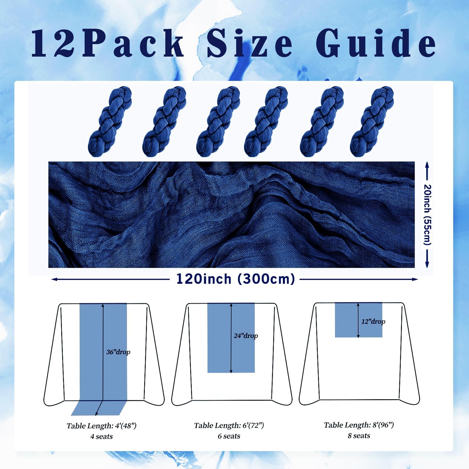 10FT 12 Pack Royal Blue Cheesecloth Table Runner 20 x 120 Inch Long Rustic Gauze Cheese Cloth Table Runner for Wedding Bridal Baby Shower Table Decorations Boho Fabric Sheer Birthday Party Table Decor