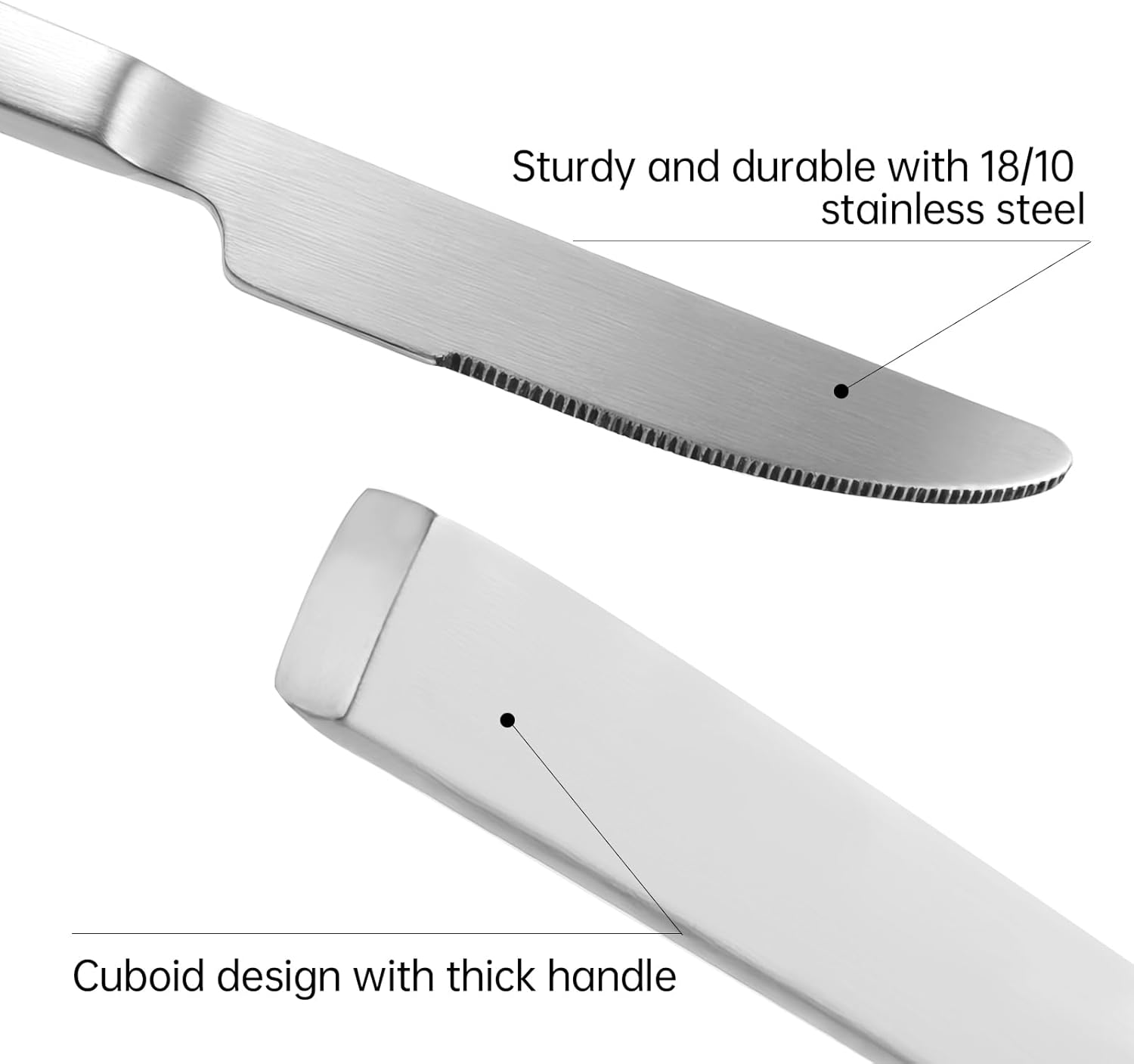 - 【APPEARANCE AND DESIGN】Luxury silver color and matte polish, elegant design with cuboid handle, dishwasher safe.