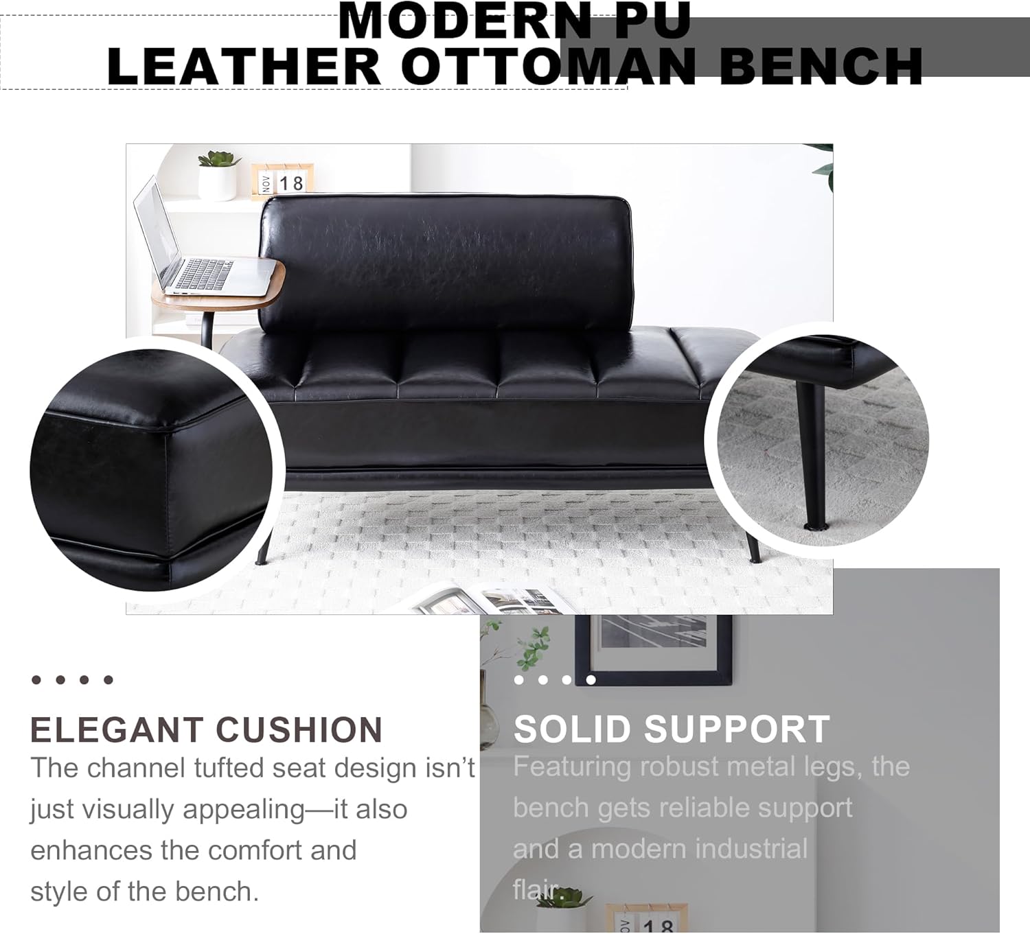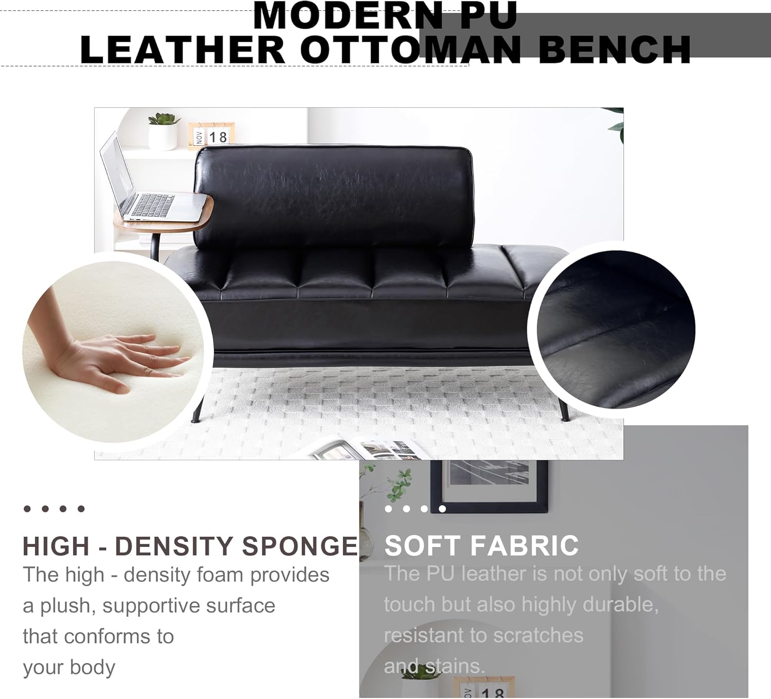 - PU Sofa: This classic yet contemporary sofa offers ultimate comfort and softness. It can be used as a bedside bench, shoe changing bench, and casual sofa,for both office and leisure purposes in small spaces.