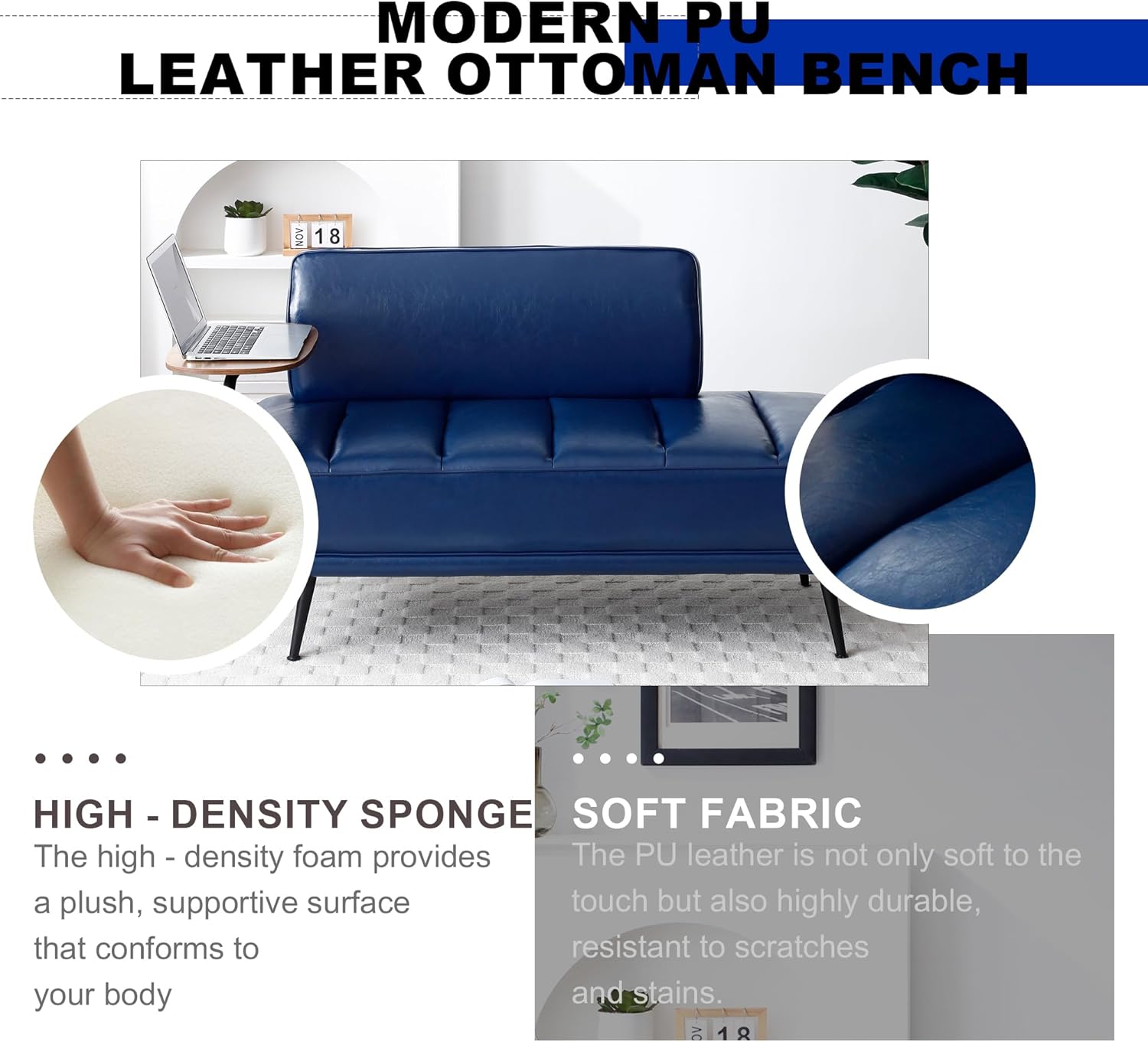 - PU Sofa: This classic yet contemporary sofa offers ultimate comfort and softness. It can be used as a bedside bench, shoe changing bench, and casual sofa,for both office and leisure purposes in small spaces.