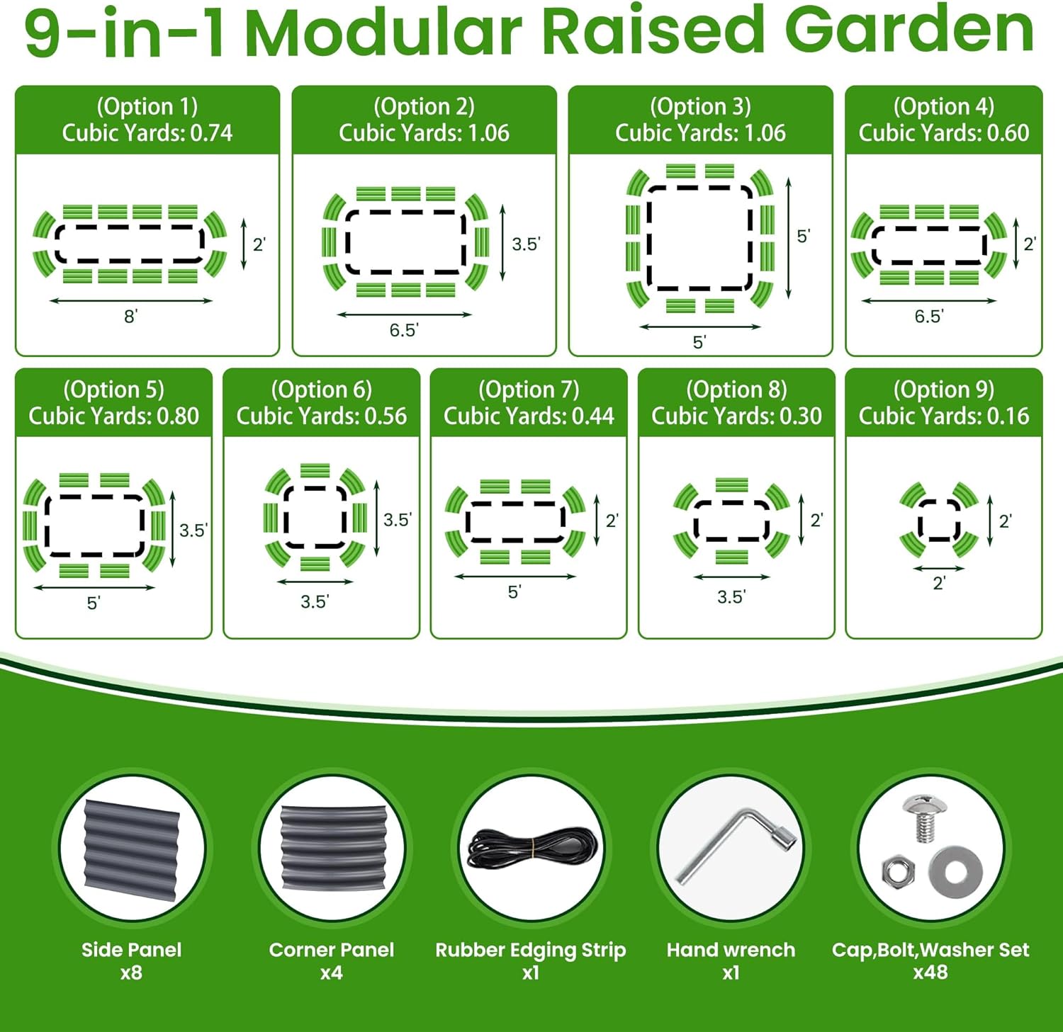 - Modular Raised Garden Bed:Our 9-in-1 modular kit means you can assemble one of 9 configurations,Pick your favorite one and then assemble your garden bed to fits your unique home garden space perfectly.