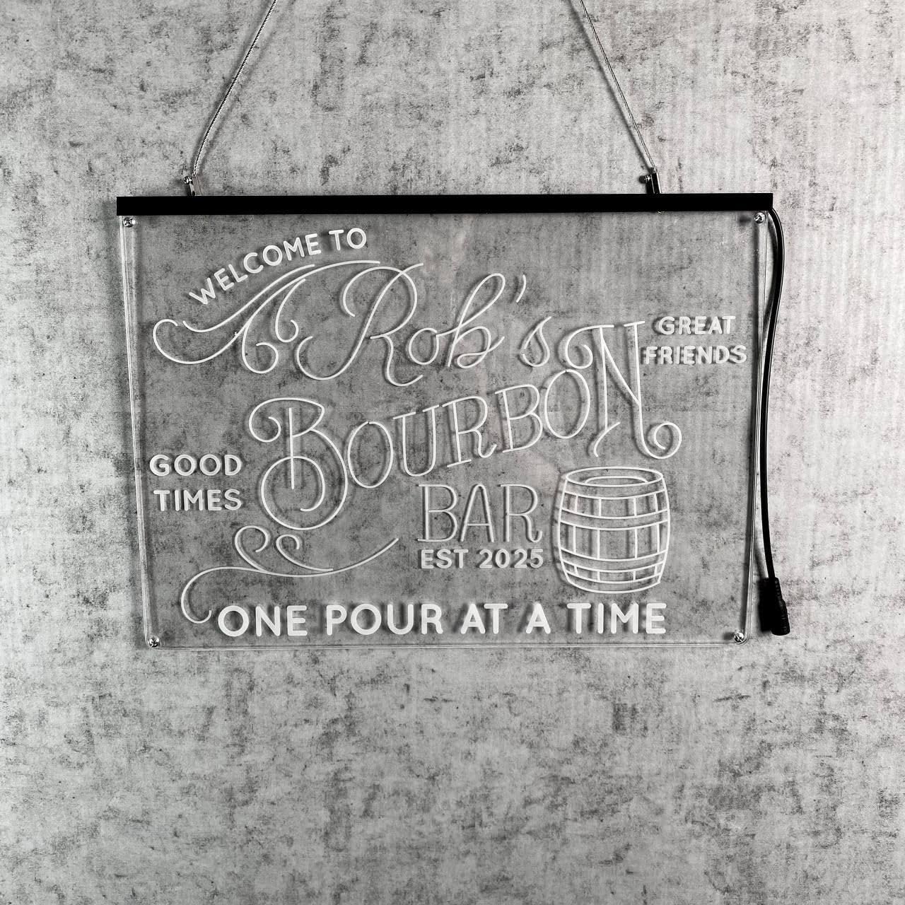 - Personalized bar signs for home bars using lighted mica LED, plug & glow. Each custom bar neon sign features durable mica and LED. Powered by a 2A, 12V source—just plug in and enjoy. Your personalized bar sign lights up instantly, no controller needed.