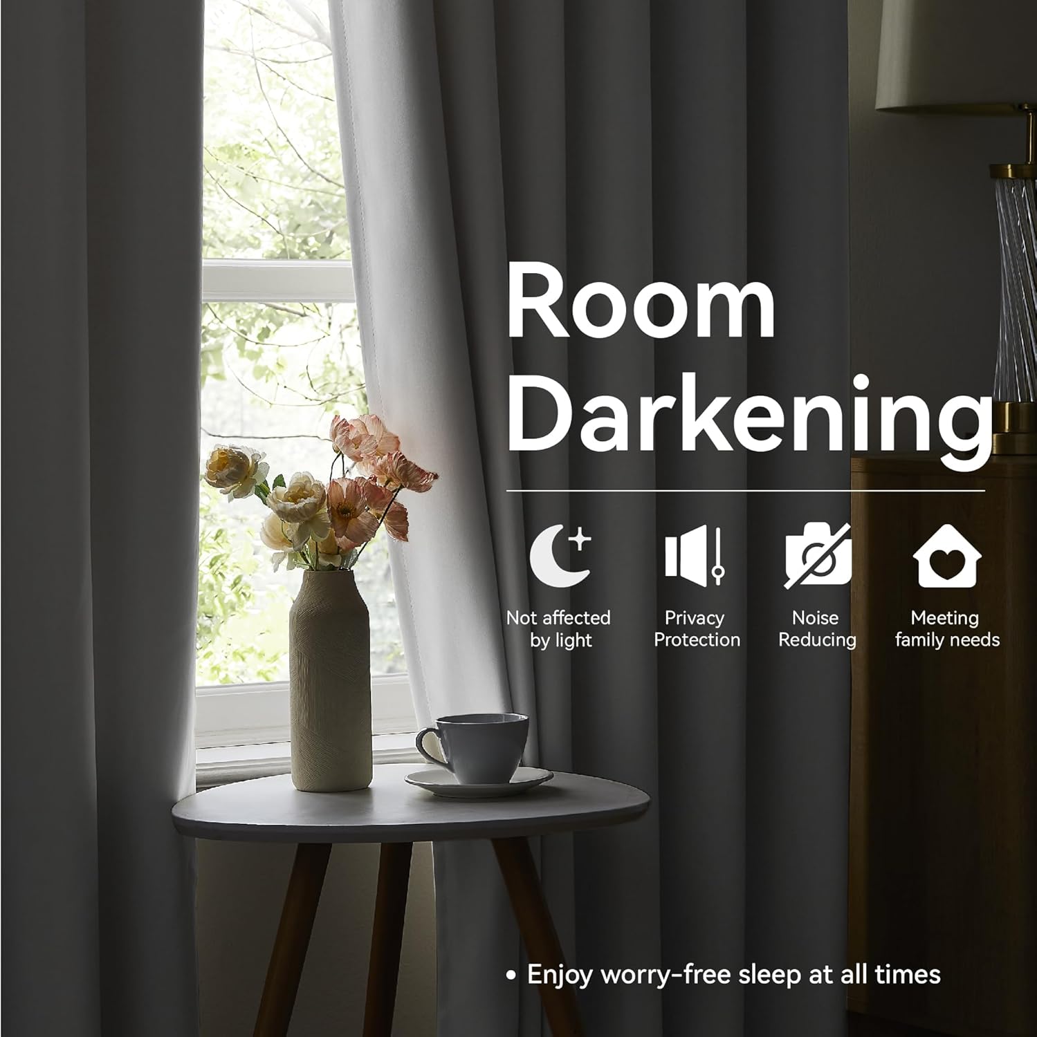 - Room Darkening & Thermal Insulated:Crafted to block out up to 85%–95% of sunlight, these blackout curtains help darken the room, reduce glare, and provide enhanced privacy—ideal for napping, movie nights, or light-sensitive settings. The thermal insulation offers excellent energy saving performance by keeping rooms warmer in winter and cooler in summer. These curtains also provide sound dampening benefits, helping to reduce outside noise for a more peaceful environment.