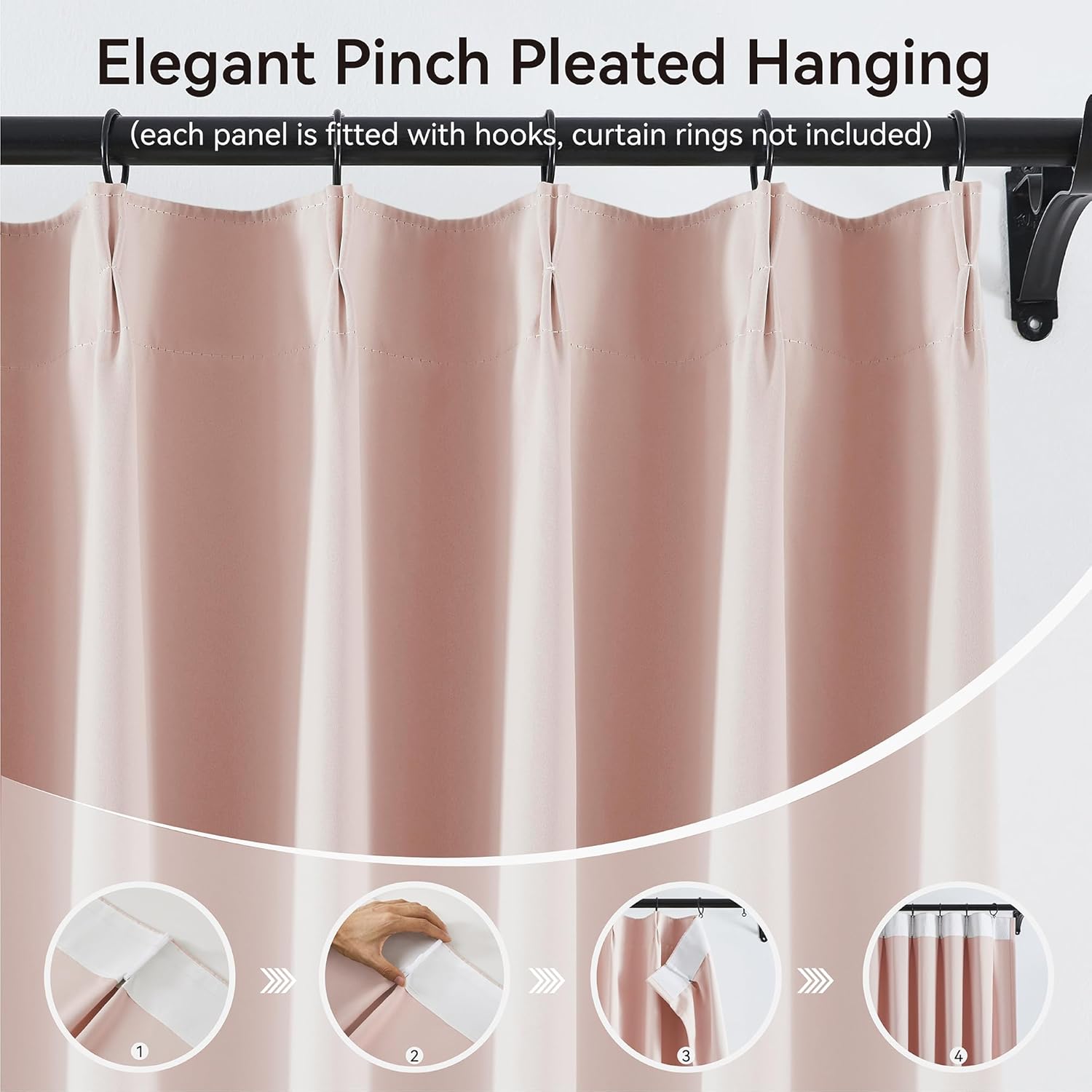 - Pinch Pleated Design:Classic pinch pleats create a clean, tailored look that adds elegance and depth to any space. These window treatments are ideal for both formal and modern interiors, offering a refined upgrade to your elegant modern decor. Perfect for living rooms, bedrooms, dining rooms, and offices, each curtain panel is heat-set and carefully draped to create a smooth, flowing appearance that makes any room look regal and upscale.