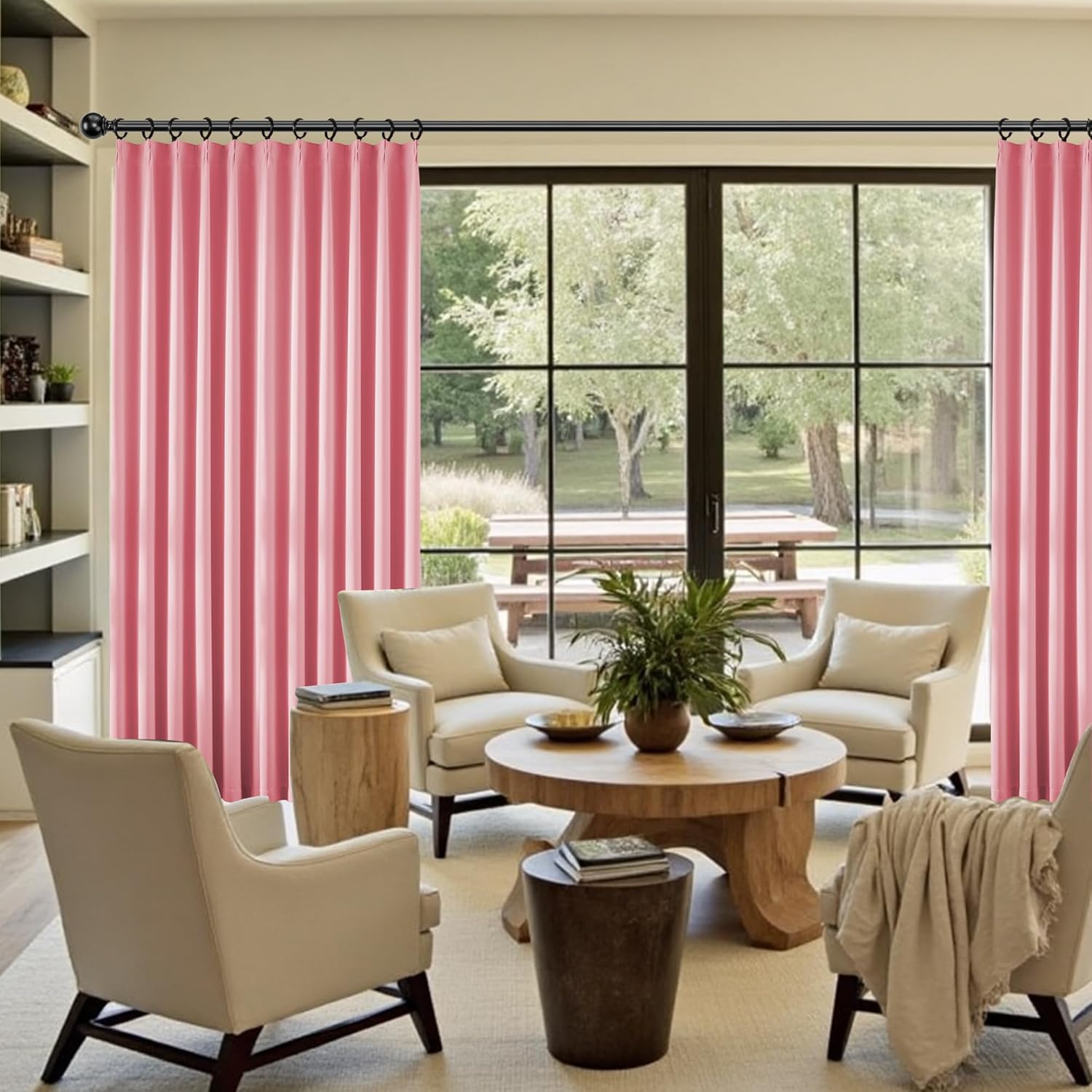 KangBang Pink Long Curtains 120 Inches Long, Pinch Pleat Blackout Curtains for Living Room Soundproof Sliding Door Aesthetic Window Panels for Traverse Rod with Hooks,2 PCs,40Wx120L