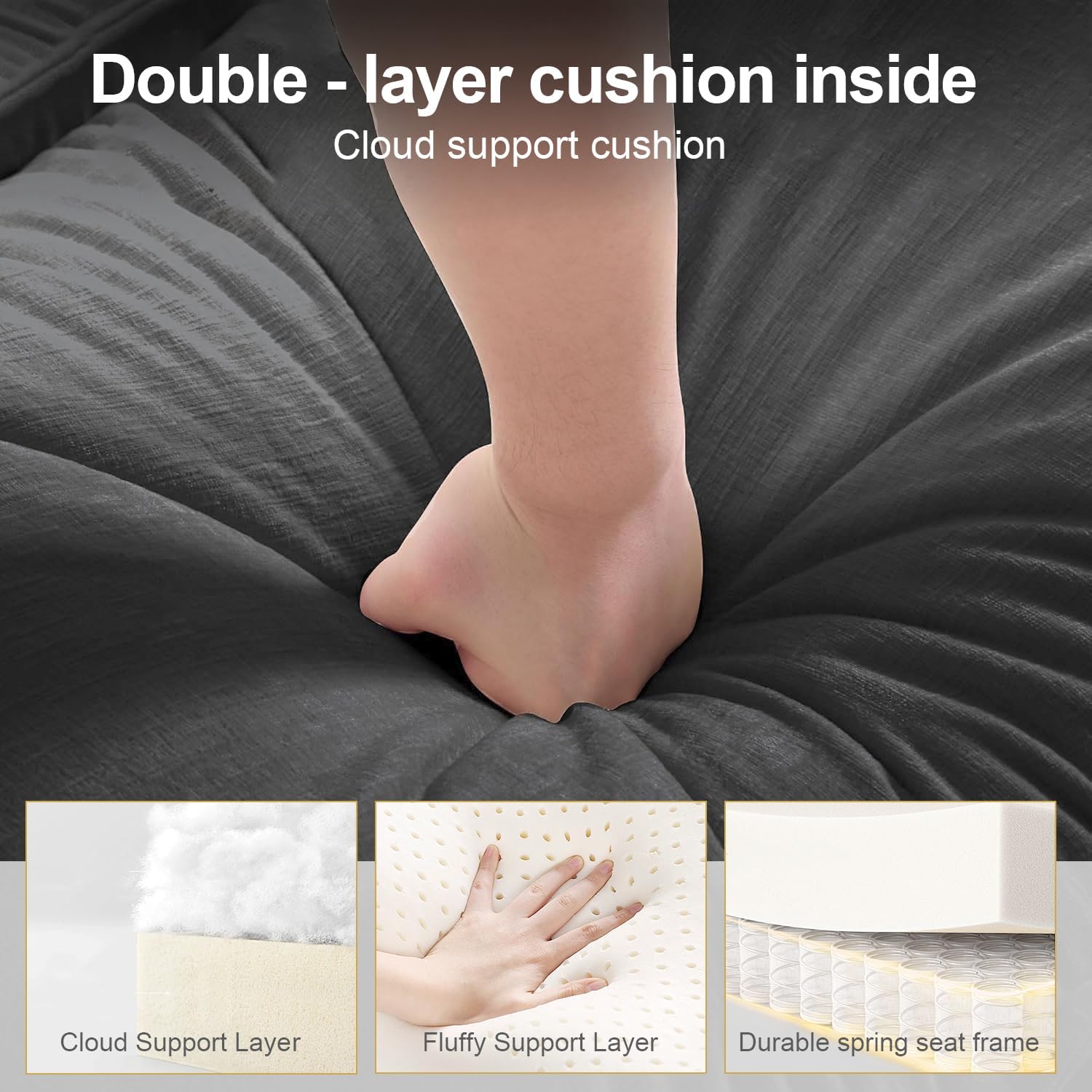 - Cloud Couch: This Sectional Couches for Living Room cushions and seat cushions are made of upgraded high - rebound sponge. The seat cushion is thickened to 7.5 inches, seat depth of 25.2 inches,Seat height from floor is 19.7 inches. The seat cushion includes cloud support layer and fluffy support layer,It allows you to enjoy a cloud - like wrapping feeling and fully relax your body.