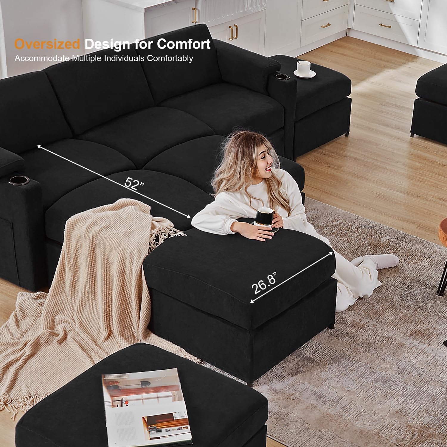 - Thoughtful Details: Our modular sofa each armrest is equipped with cup holder,soft armrest pad,and side pockets, adding more comfort and convenience to your daily life.