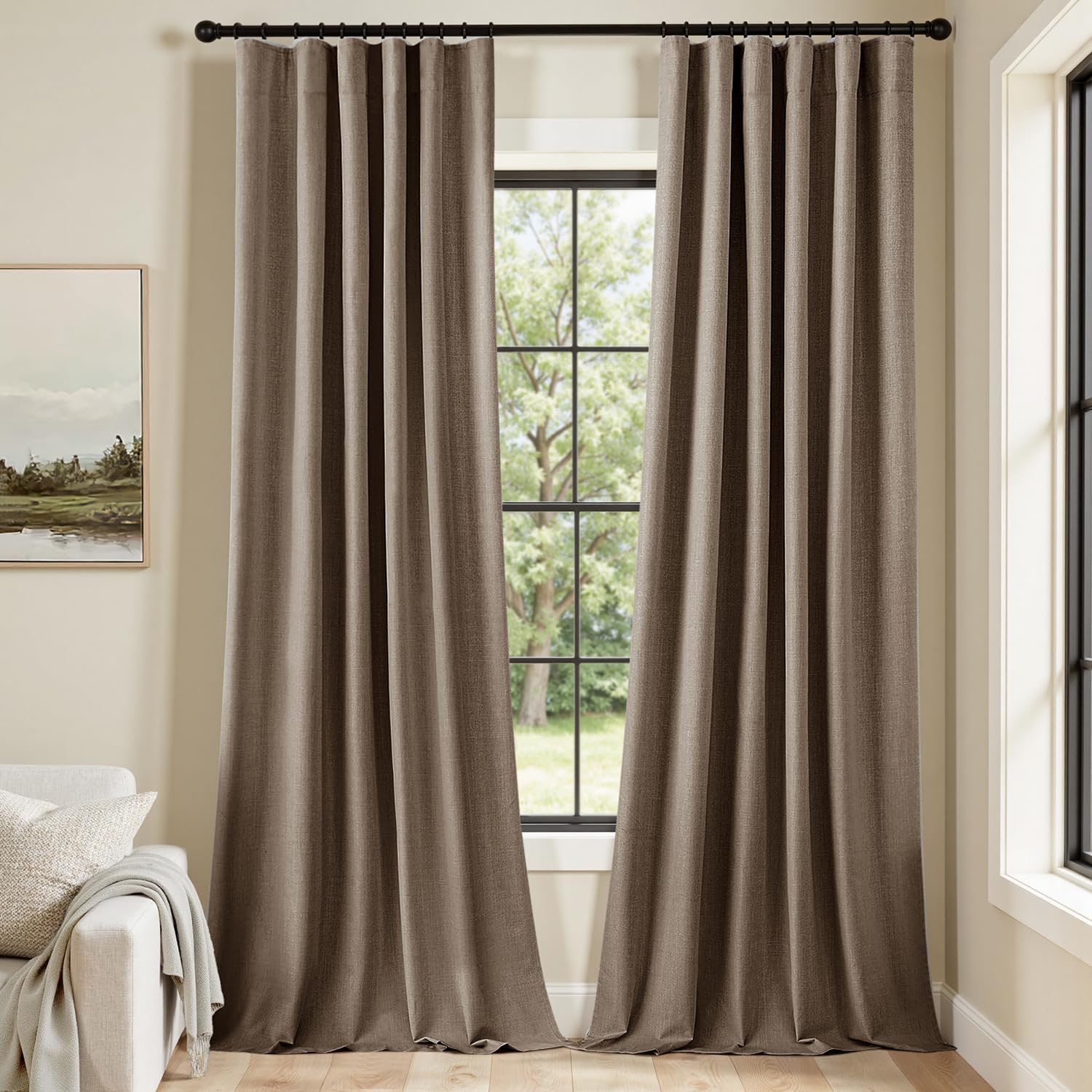 MIULEE 100% Blackout Curtains 108 Inch Long 2 Panels Set for Bedroom, Thick Faux Linen Black Out Curtain Room Darkening Back Tab Pleat Window Textured Drapes with Hooks for Living Room, Dutch Cocoa