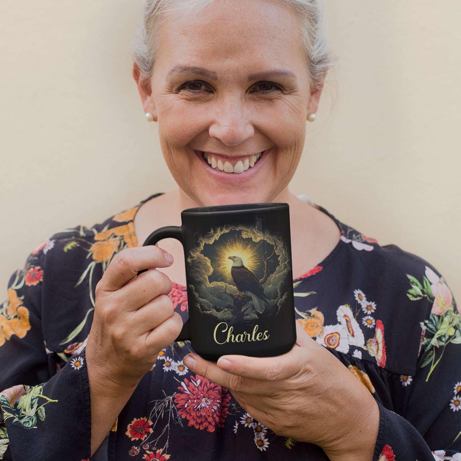 - Uniquely Personalized: Inspire every sip with this Custom Wildlife Art Coffee Mug featuring a majestic eagle and serene nature scene. Add a personalized name to create a meaningful gift for animal lovers and friends who admire the wild. A stunning black ceramic cup that brings nature to life. Click "Customize Now" to make this unique eagle mug truly yours!