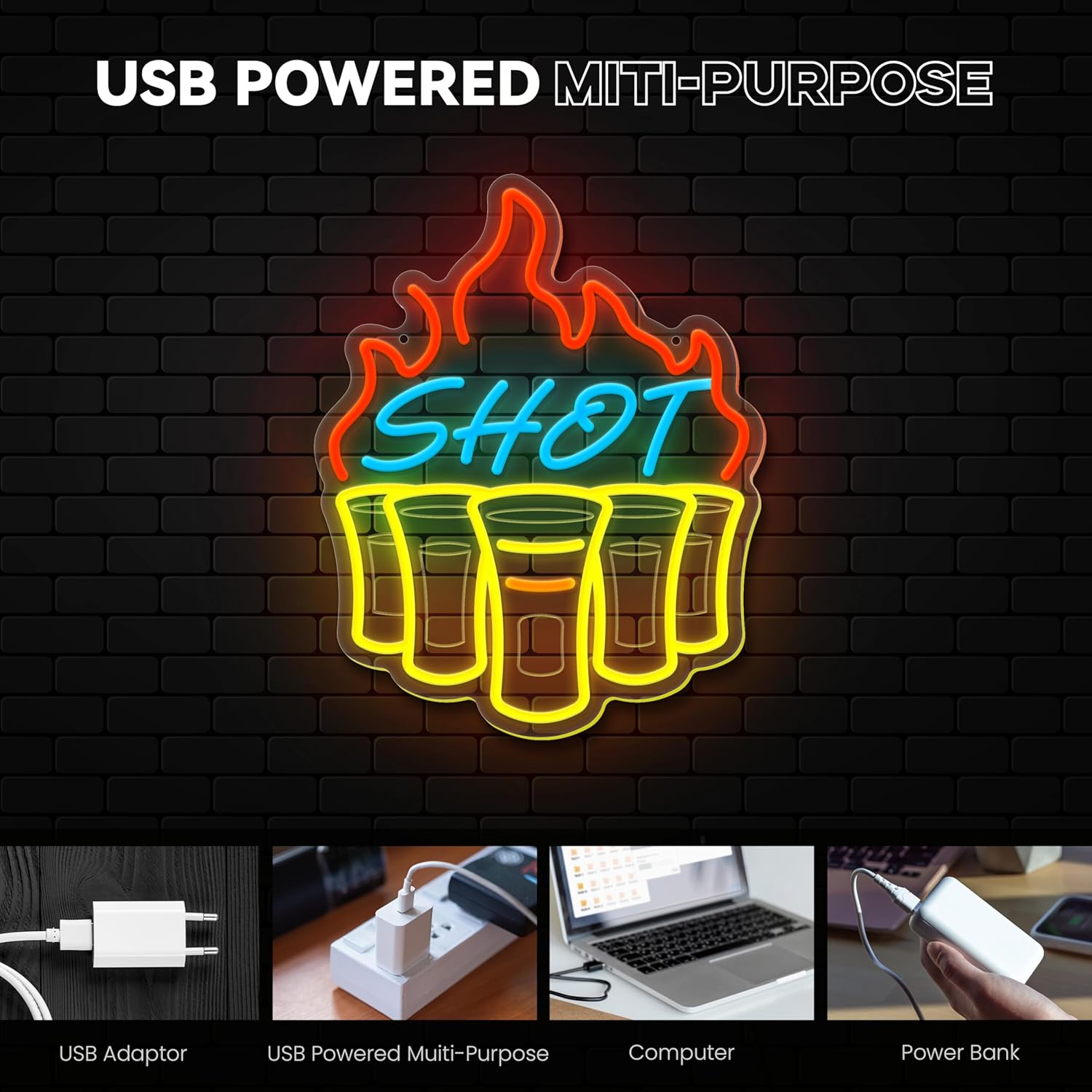 - 【Shot Neon Sign】 I believe that many people like to drink shot wine. This neon light can perfectly create a hot, joyful and tipsy atmosphere, making people can't wait to drink a glass of shot wine and let the alcohol bloom hotly in their mouths.