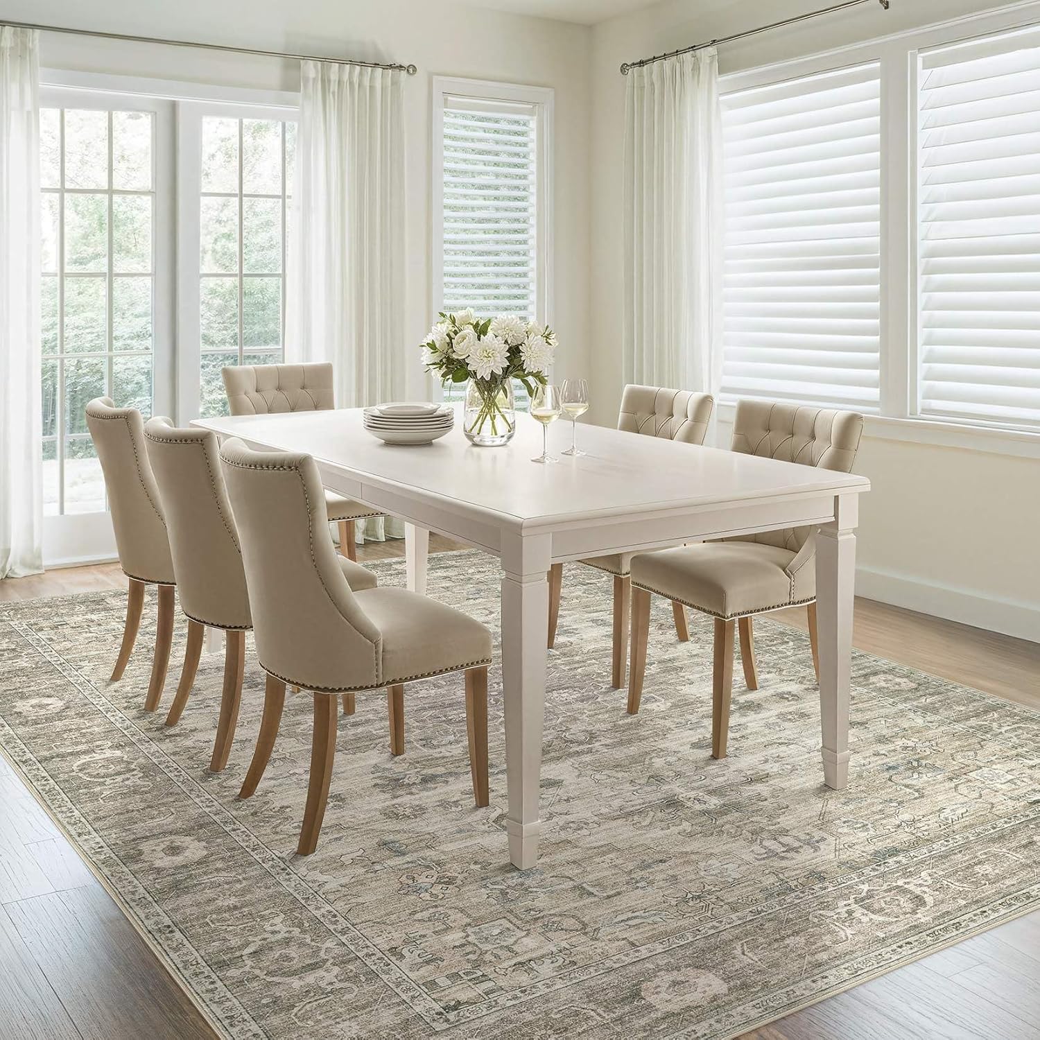 Washable Area Rugs for Living Room -10x13 Neutral Vintage Distressed Floral Farmhouse Boho Large Soft Floor Rug Indoor Non Slip Carpet for Living Room Bedroom Dining Room Office-Brown/Tan