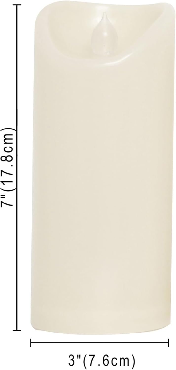 Waterproof Outdoor Battery Operated Flameless Candles with Auto Timer Flickering Plastic Resin Electric LED Pillar Lights for Lantern Patio Garden Wedding Party Decorations 3x7 Inches Ivory 2 Pack