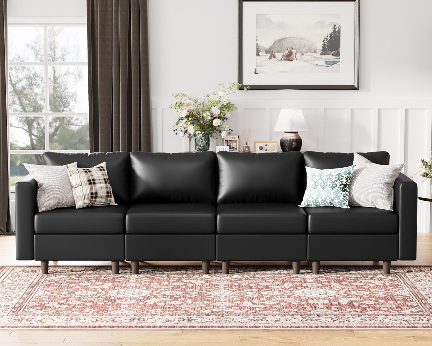 118.5" Faux Leather Modular Sectional Sofa with Storage Seat, Oversized 4 Seater Couch Deep Seat with Removable Cover Black