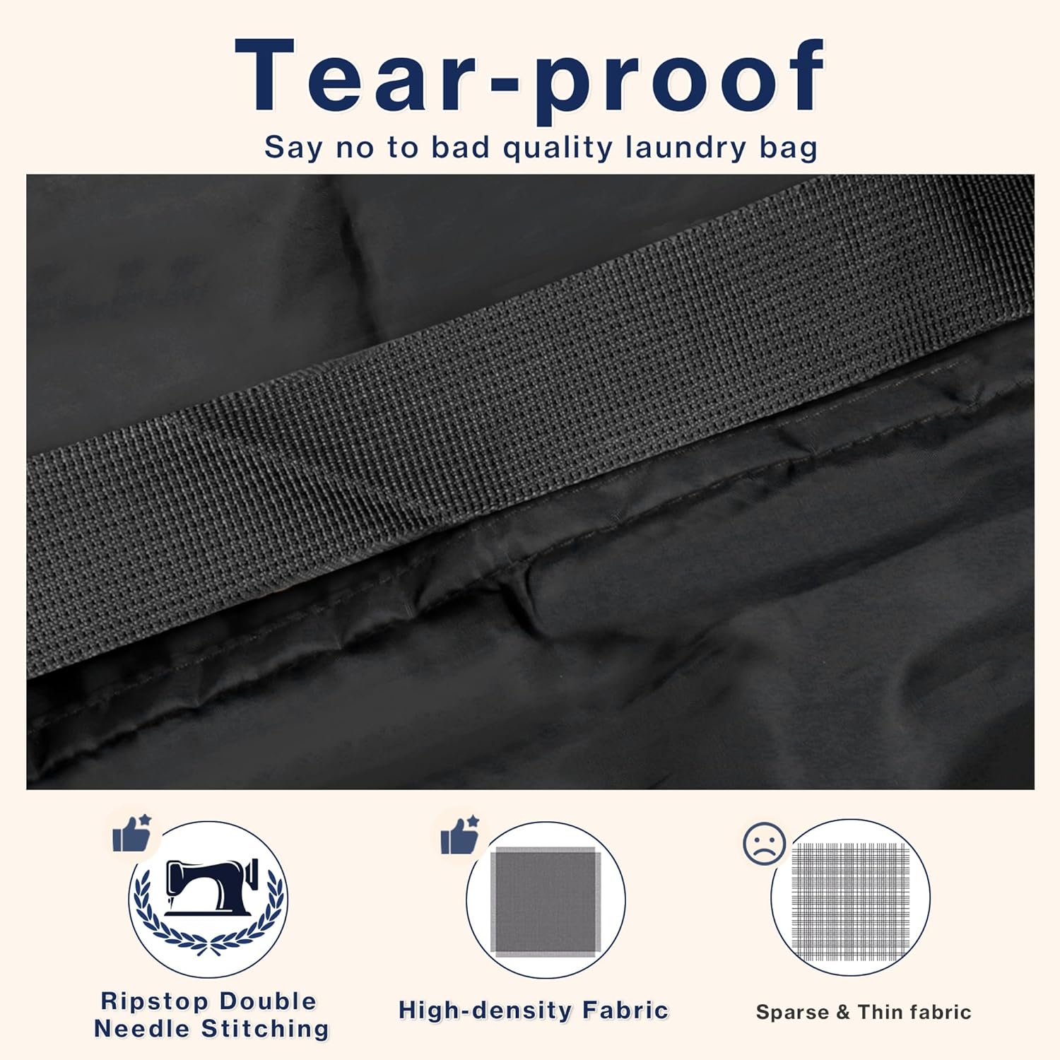 - Portable Hanging Bag: With a hanging loop on the bag, you can hang this extra-large laundry bag on the wall or door as a practical laundry bag to conveniently collect dirty clothes, and without taking up floor area.