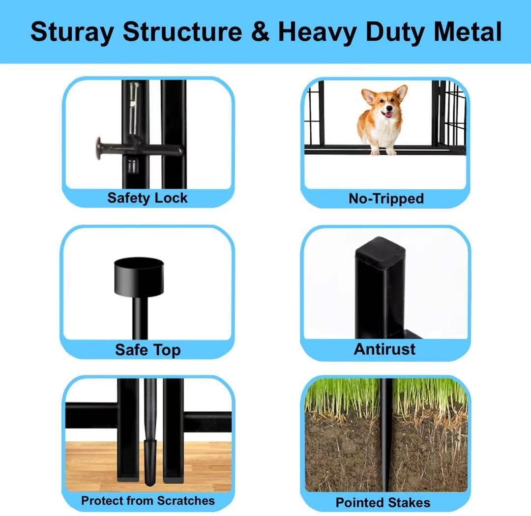 - Dual-Purpose for Indoor and Outdoor Use: This Outdoor Dog Fence Comes with Metal Rods That are 4 Inches Taller Than The Panels. When Used Outdoors, You Can Insert The Rods Into The Ground to Enhance Stability. As An Animal Barrier Fence, It Keeps Small Animals Out of The Garden and Won’t be Knocked Over by Dogs. For Indoor Use, The Fence Rods are Fitted with Rubber Protective Covers to Prevent Floor Scratches During Use.