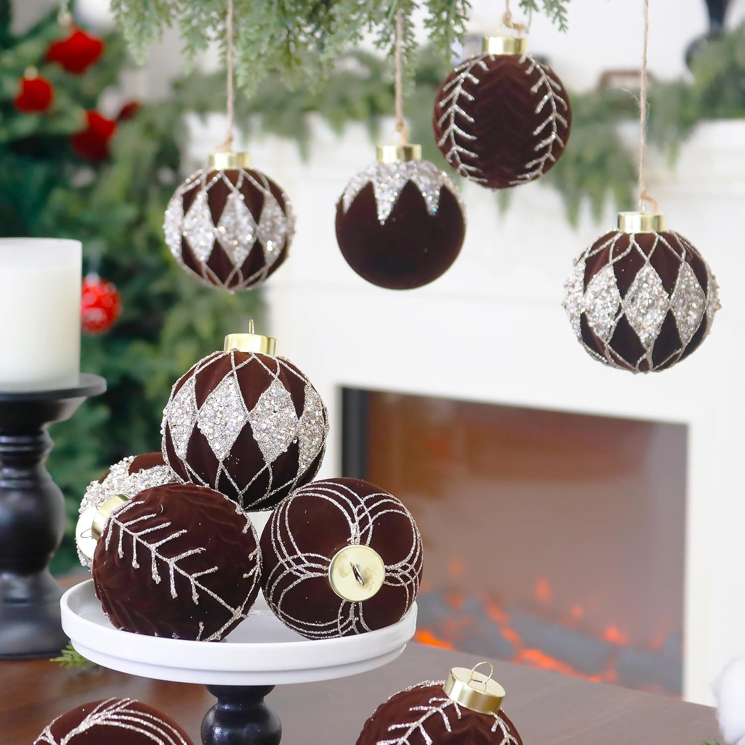 - Flocked Design: the Christmas ornaments balls enjoy flocking texture,scattering these velvet Christmas hanging balls can create a retro and beautiful effect, transforming your home into a distinctive and elegant winter scene